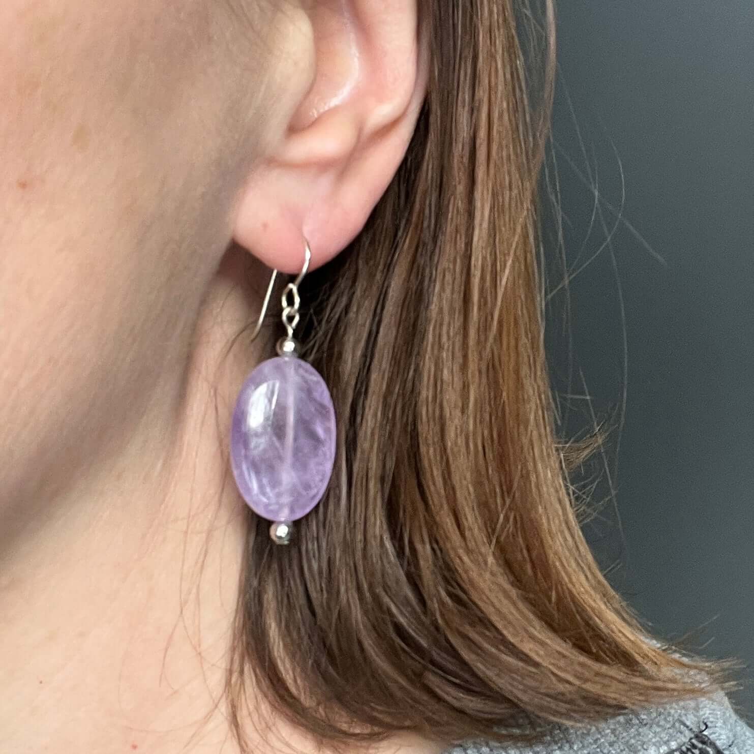 These earrings are made with high-quality Amethyst stones which bring serenity to the wearer.