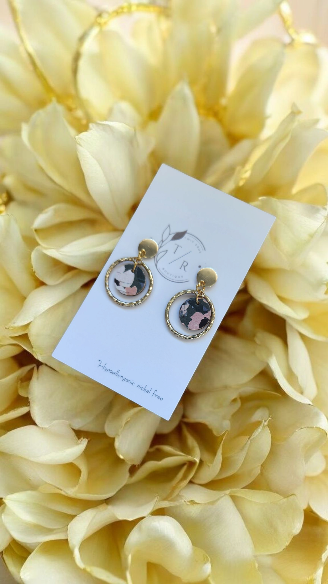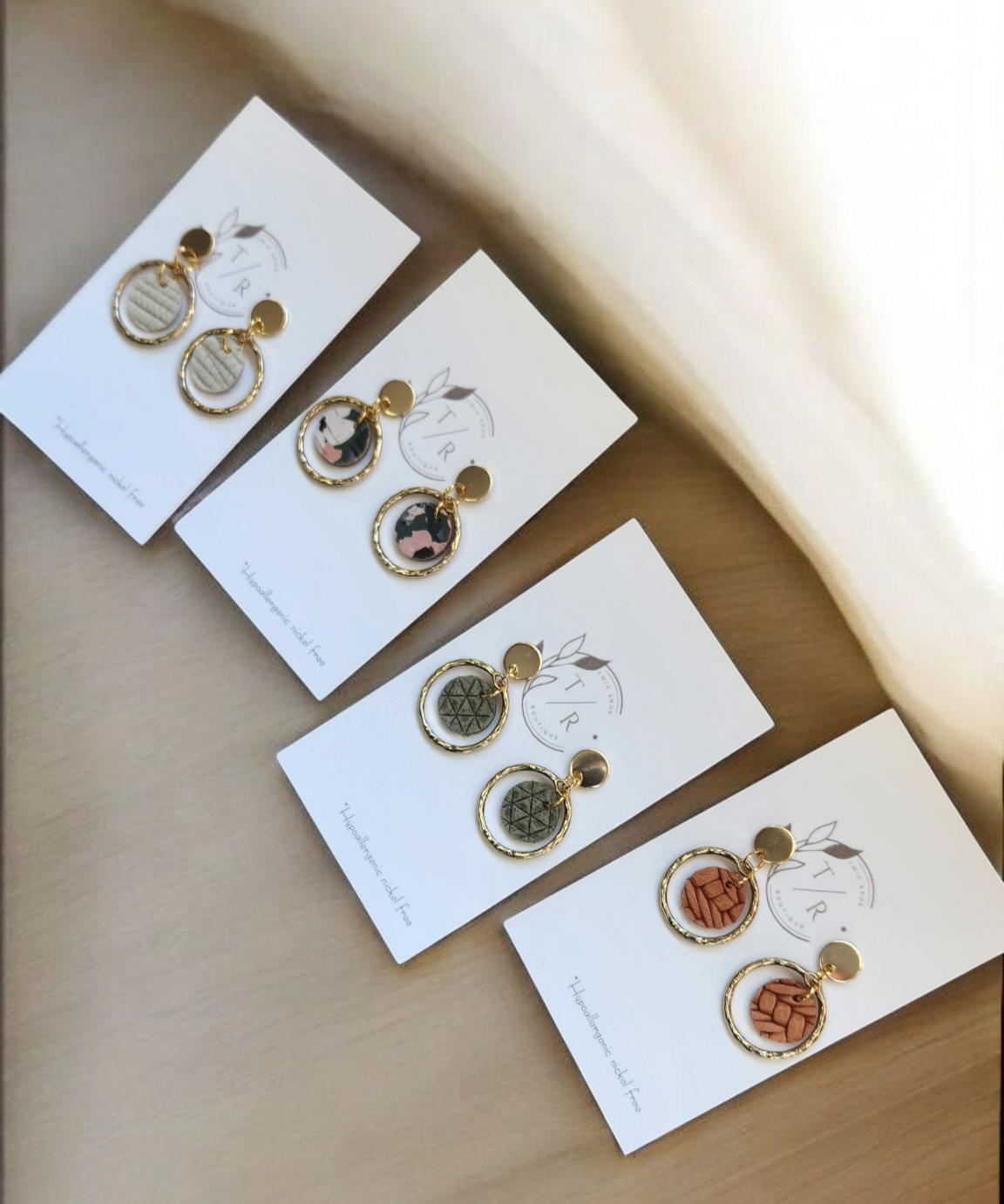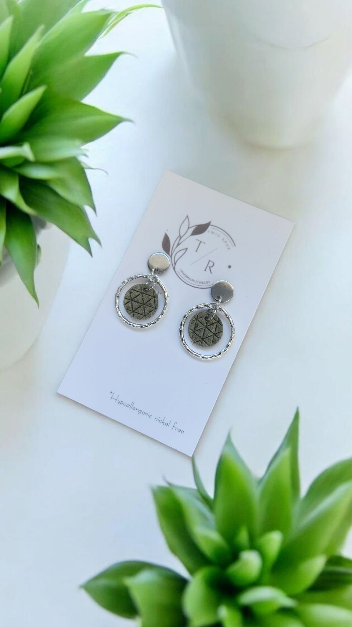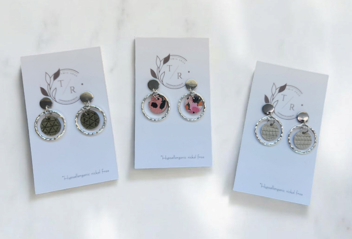 A mini version of our popular Carli- a fun & flirty statement earring! We use a 16k gold or silver plated hammered circle with genuine cork leather or embossed genuine leather. Hypoallergenic, nickel free and lightweight!