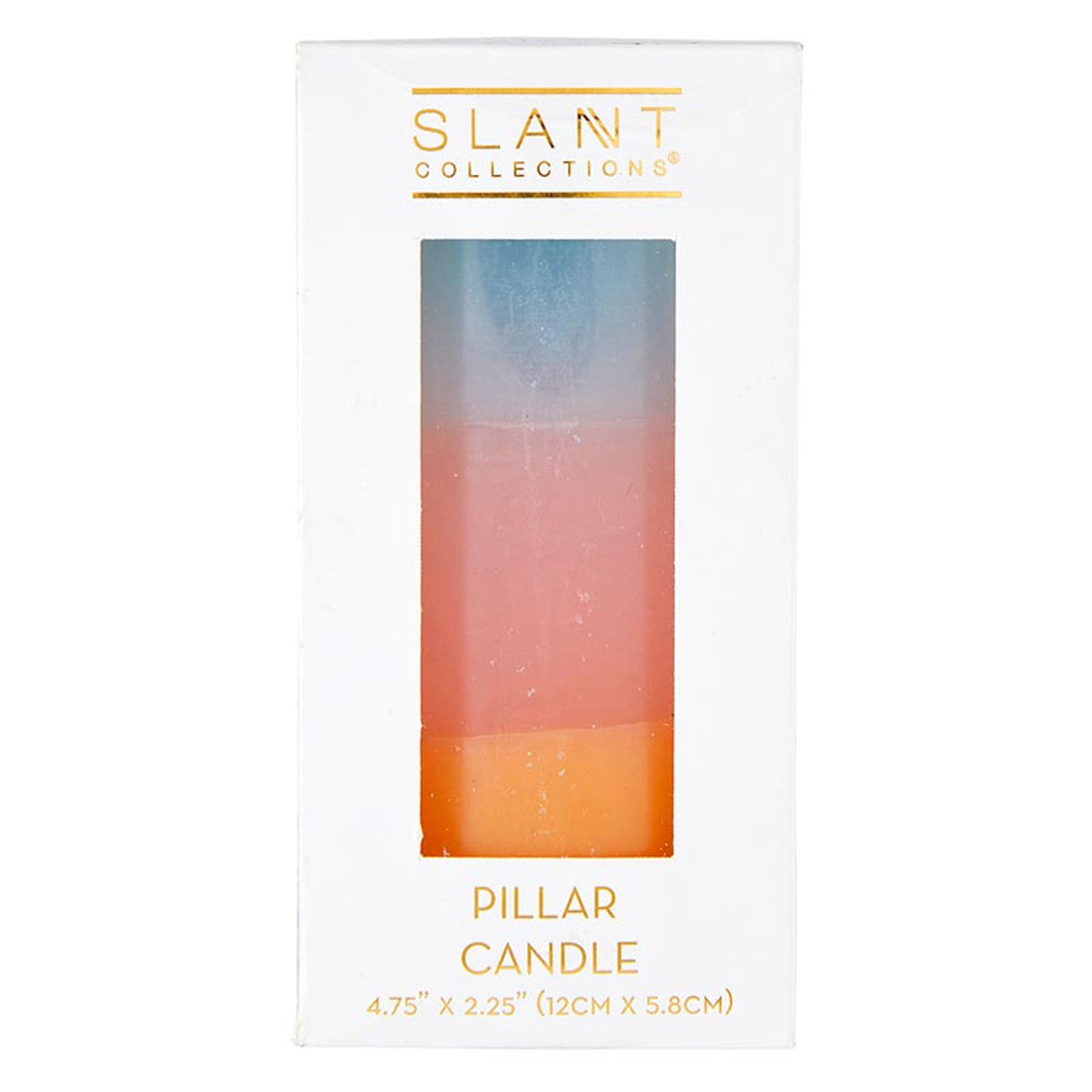 Enhance your home decor with this stylish Mini Pillar Candle in Blue Pink Orange, featuring a trendy tri-colored ombre design that adds a pop of color to any room. Perfect for creating a cozy ambiance during dinner parties or as a thoughtful housewarming gift for loved ones. Crafted from unscented wax, this 4.75-inch tall candle is a chic addition to your dining table or mantelpiece, showcasing a unique aesthetic that is sure to impress guests. Makes a thoughtful gift for friends who appreciate artistic home accents.
