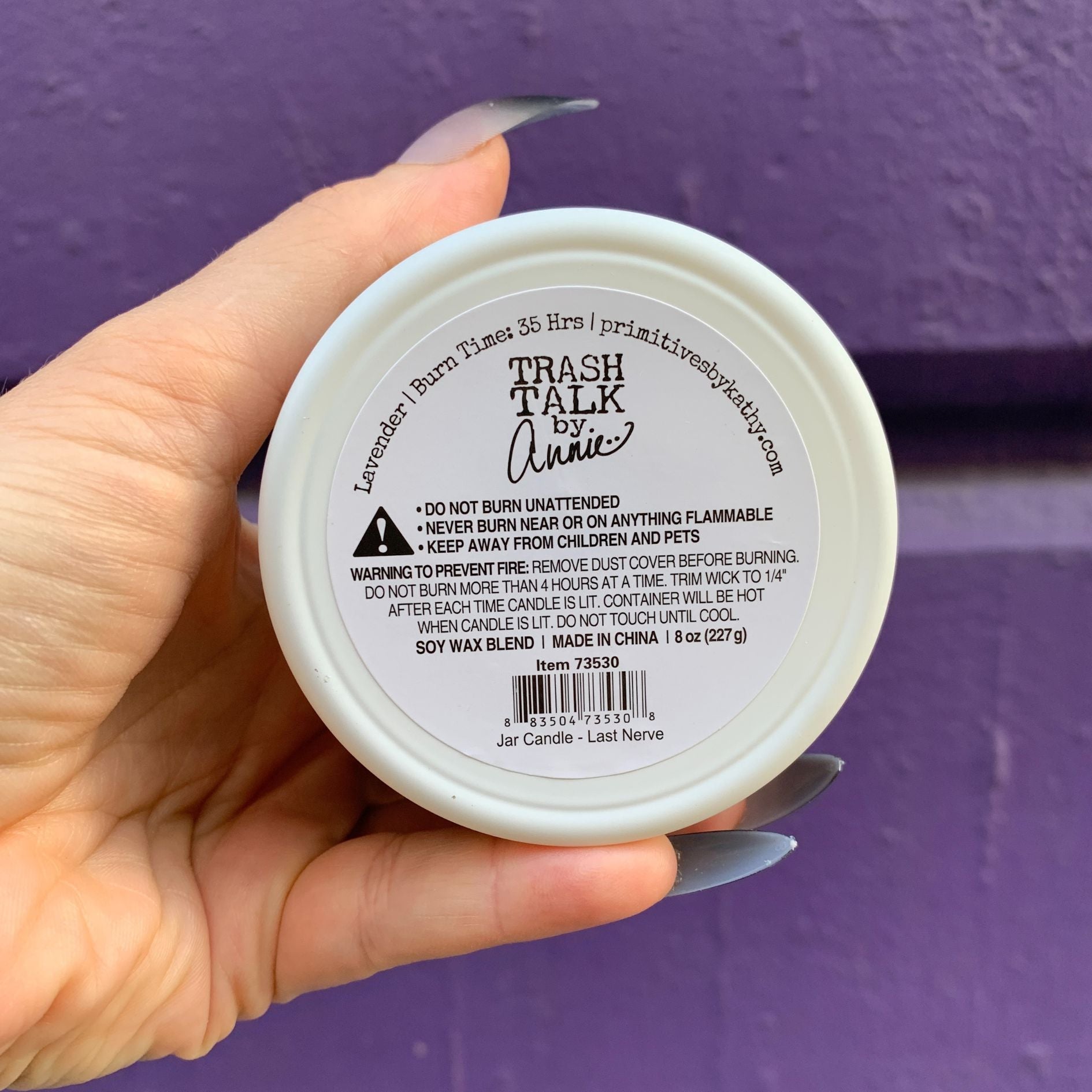 Light up your space with the My Last Nerve Jar Candle, featuring a vintage photograph design and calming lavender scent. This soy wax candle burns for up to 35 hours, making it a unique and humorous gift for any occasion.
