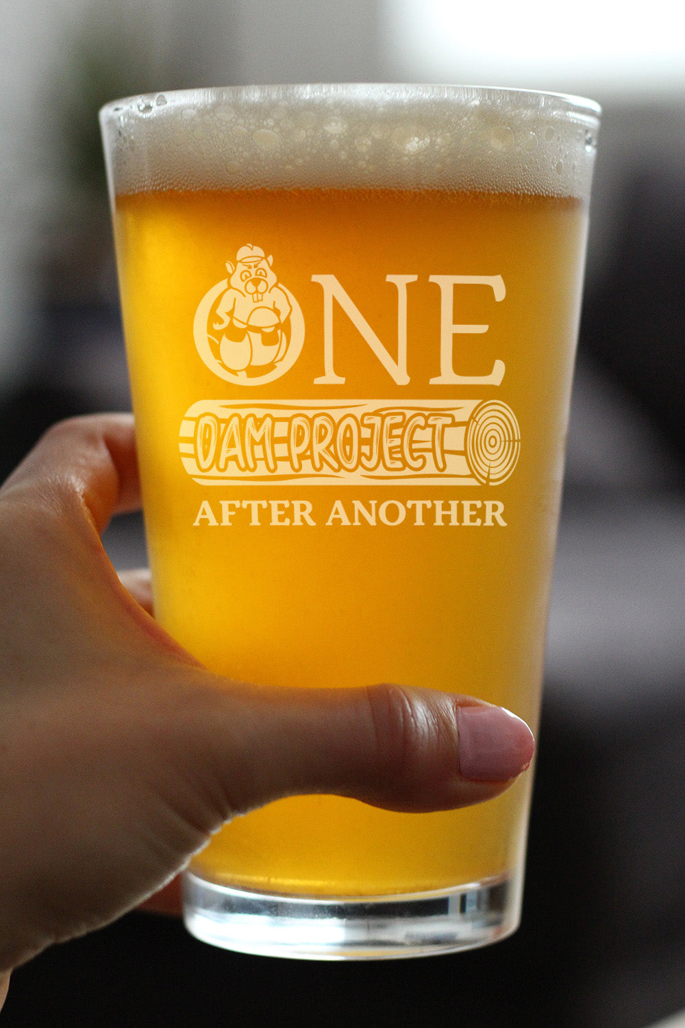 One Dam Project - Pint Glass for Beer - Funny Handyman Gifts for Construction Workers - 16 oz Glasses