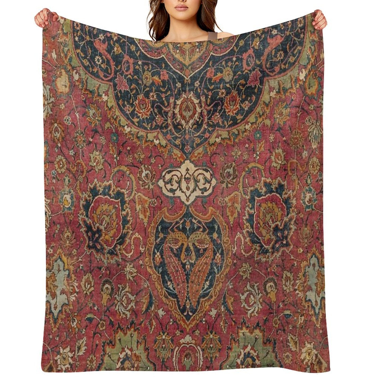 Why Persian Medallion Rug VIII 16th Century Distressed Red Green Blue Flowery Colorful Ornate Pattern Blanket Stands Out: