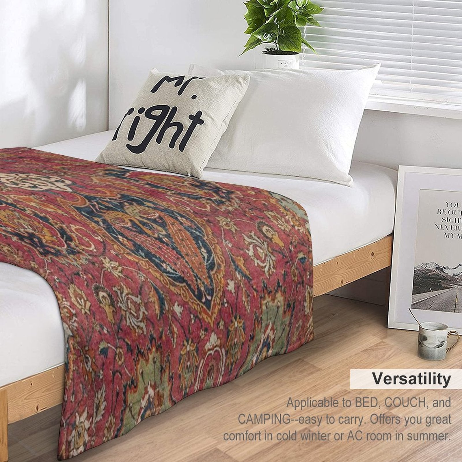 - Perfect for chilly movie nights, camping trips, or adding a cozy touch to your Persian Medallion Rug VIII 16th Century Distressed Red Green Blue Flowery Colorful Ornate Pattern-styled living space.