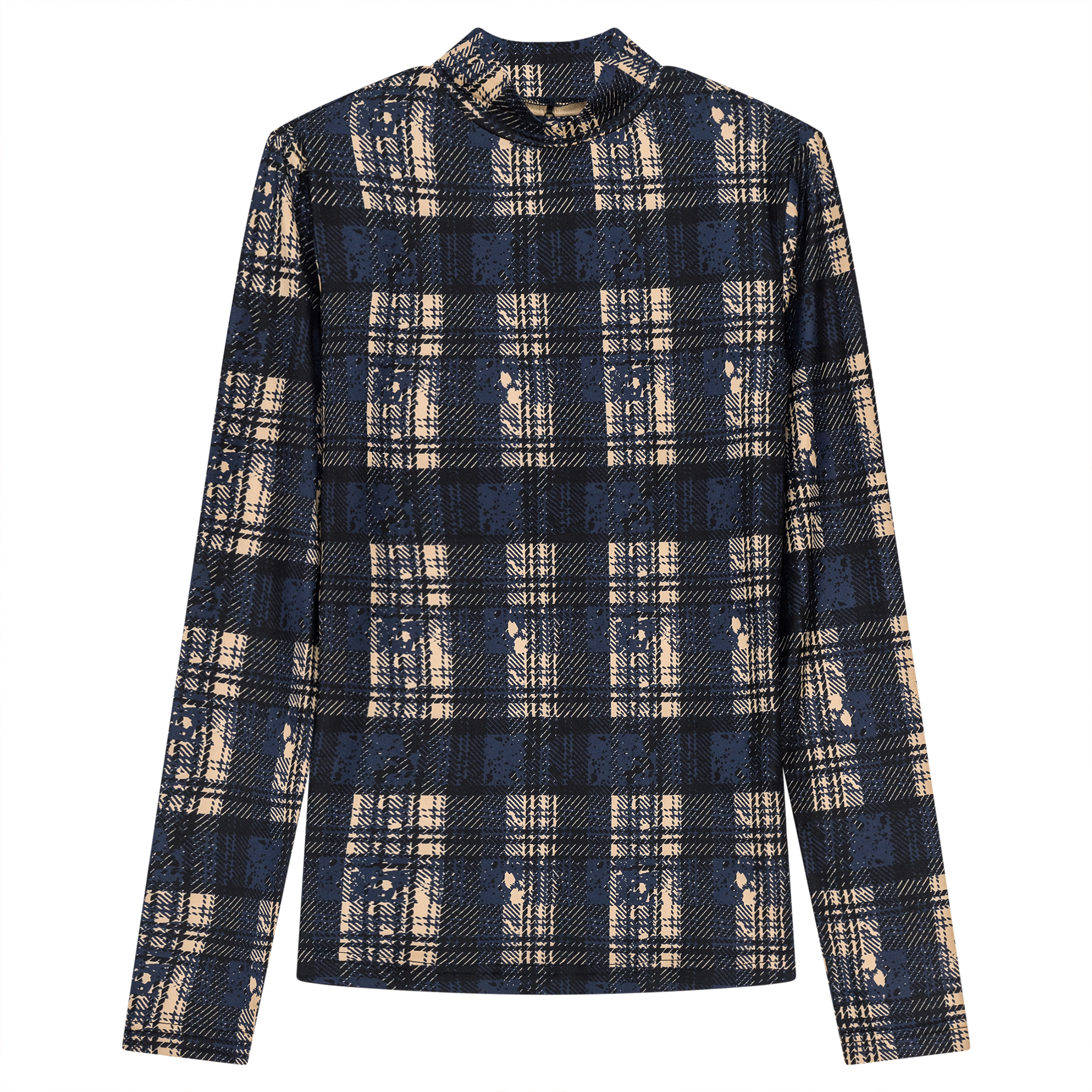 Ladies long sleeve printed micro mock neck top.ֲ