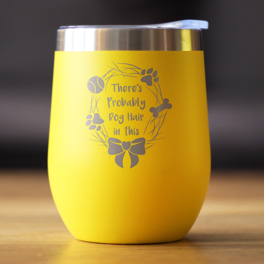 Probably Dog Hair In This - Wine Tumbler Cup with Sliding Lid - Stainless Steel Insulated Mug - Funny Dog Gifts for Dog Lovers ‐ Yellow