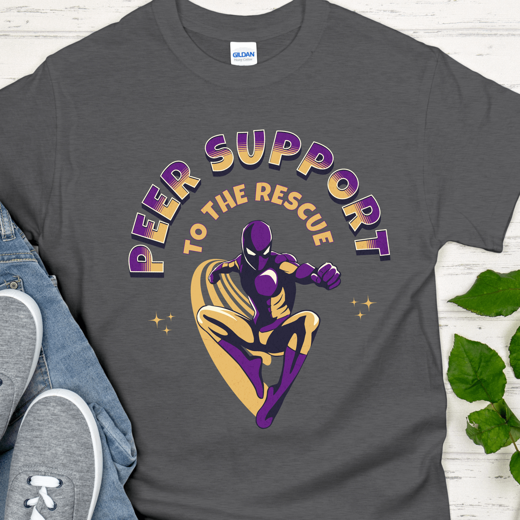 Recovery T-Shirt | Inspiring Sobriety | Peer Support To The Rescue ‐ Dark Heather / S