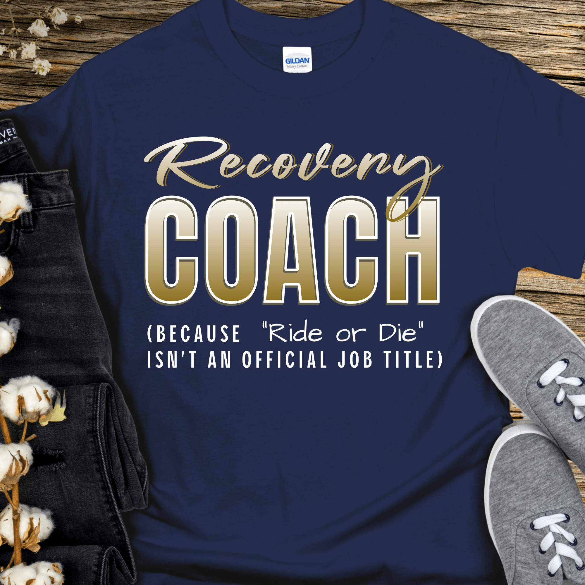 Recovery T-Shirt | Inspiring Sobriety | Recovery Coach (Ride or Die) ‐ Navy / S