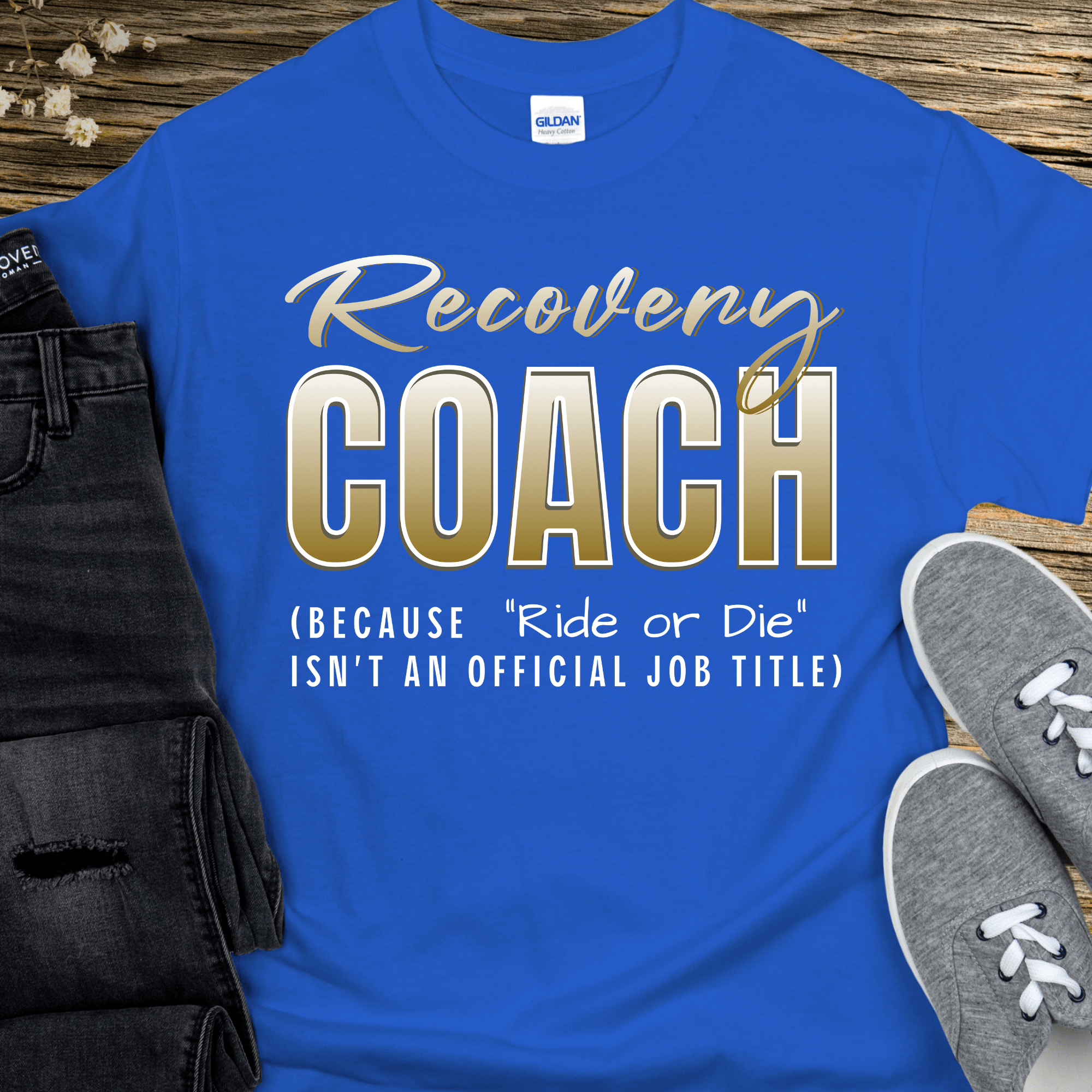 Recovery T-Shirt | Inspiring Sobriety | Recovery Coach (Ride or Die) ‐ Royal / L