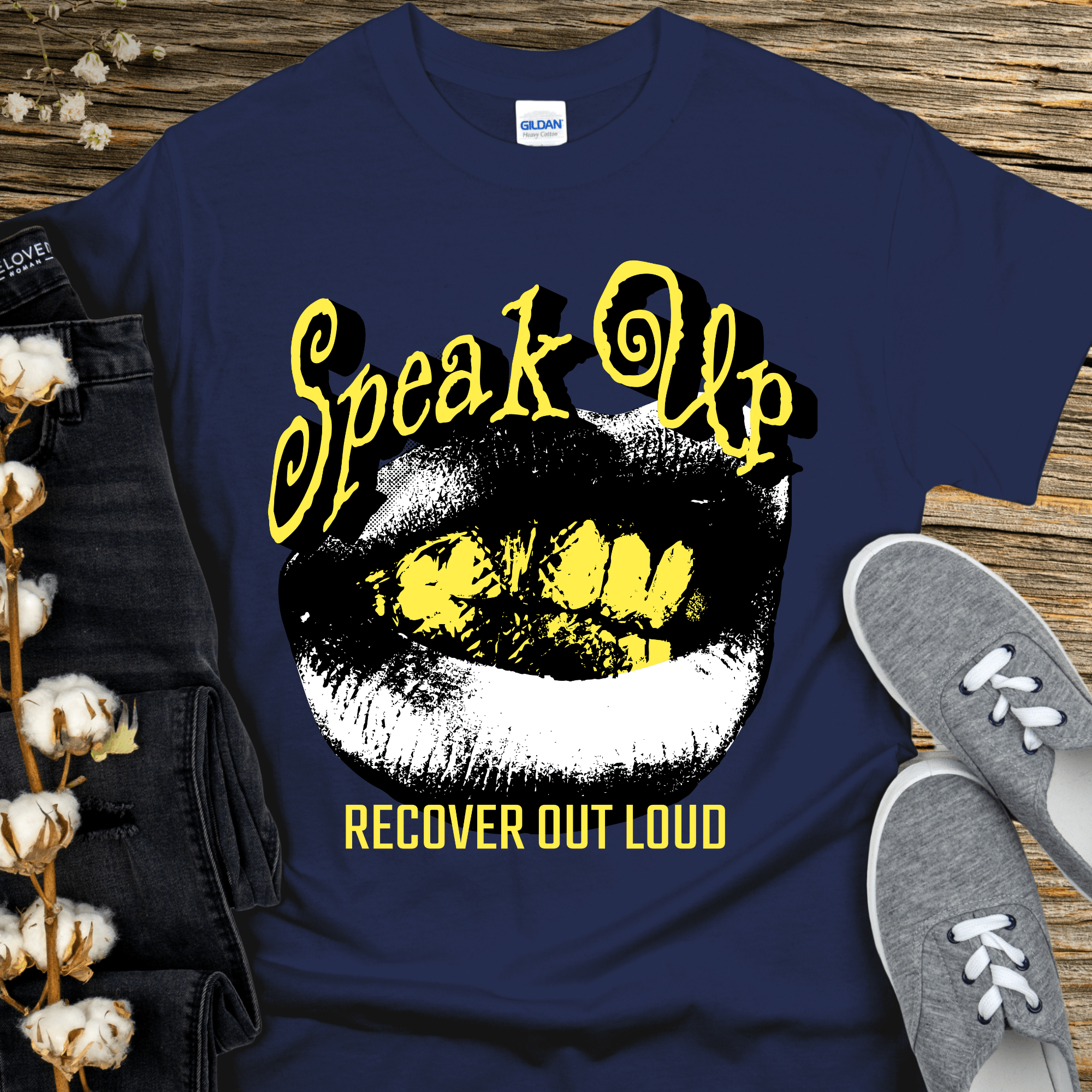 Recovery T-Shirt | Inspiring Sobriety | Speak Up, Recover Out Loud ‐ Navy / M