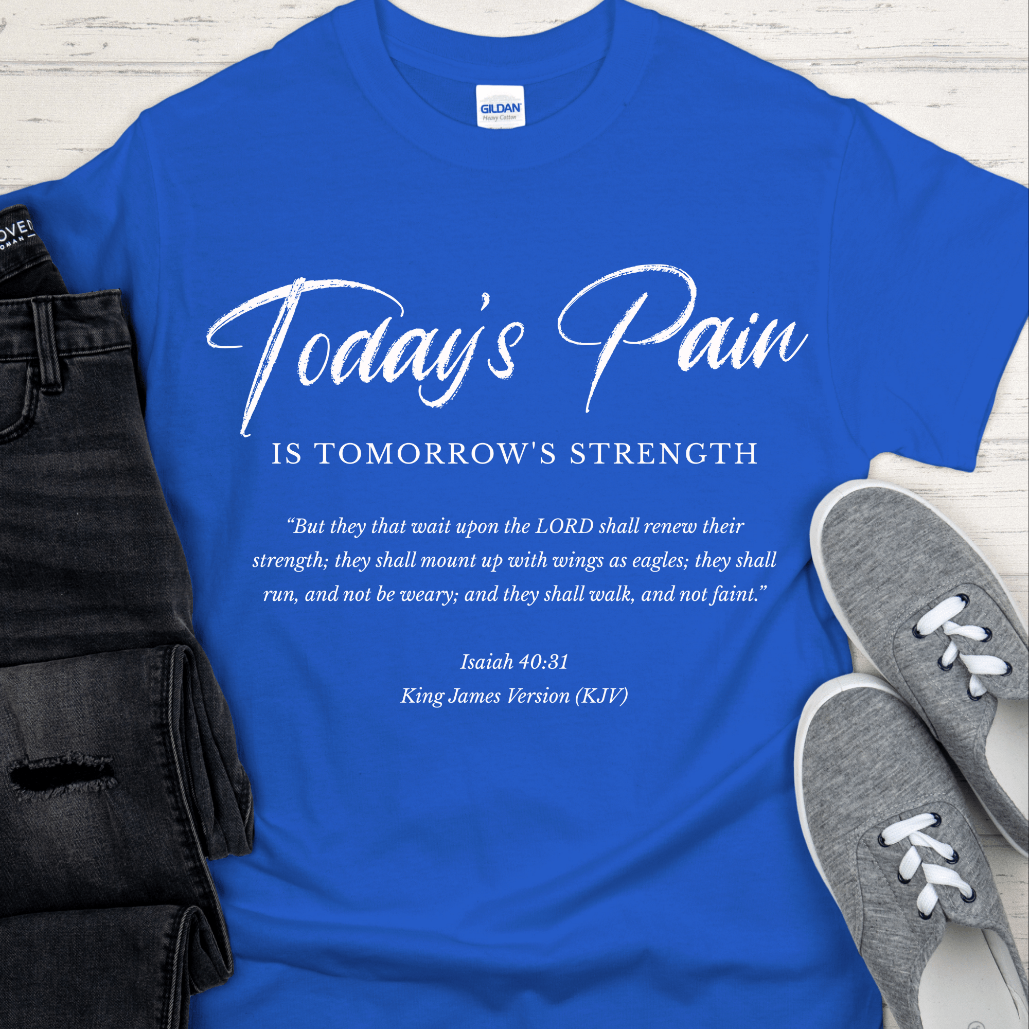 Recovery T-Shirt | Inspiring Sobriety | Today's Pain Is Tomorrow's Strength ‐ Royal / M