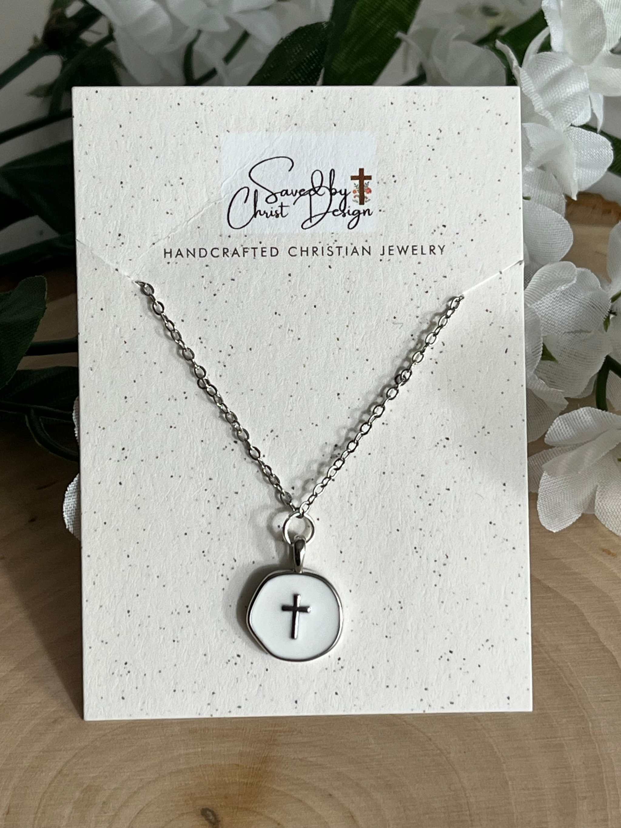 Looking for a gold version? Check out our popular Gold White Cross Pendant Necklace for the same classic design in a warm gold finish.