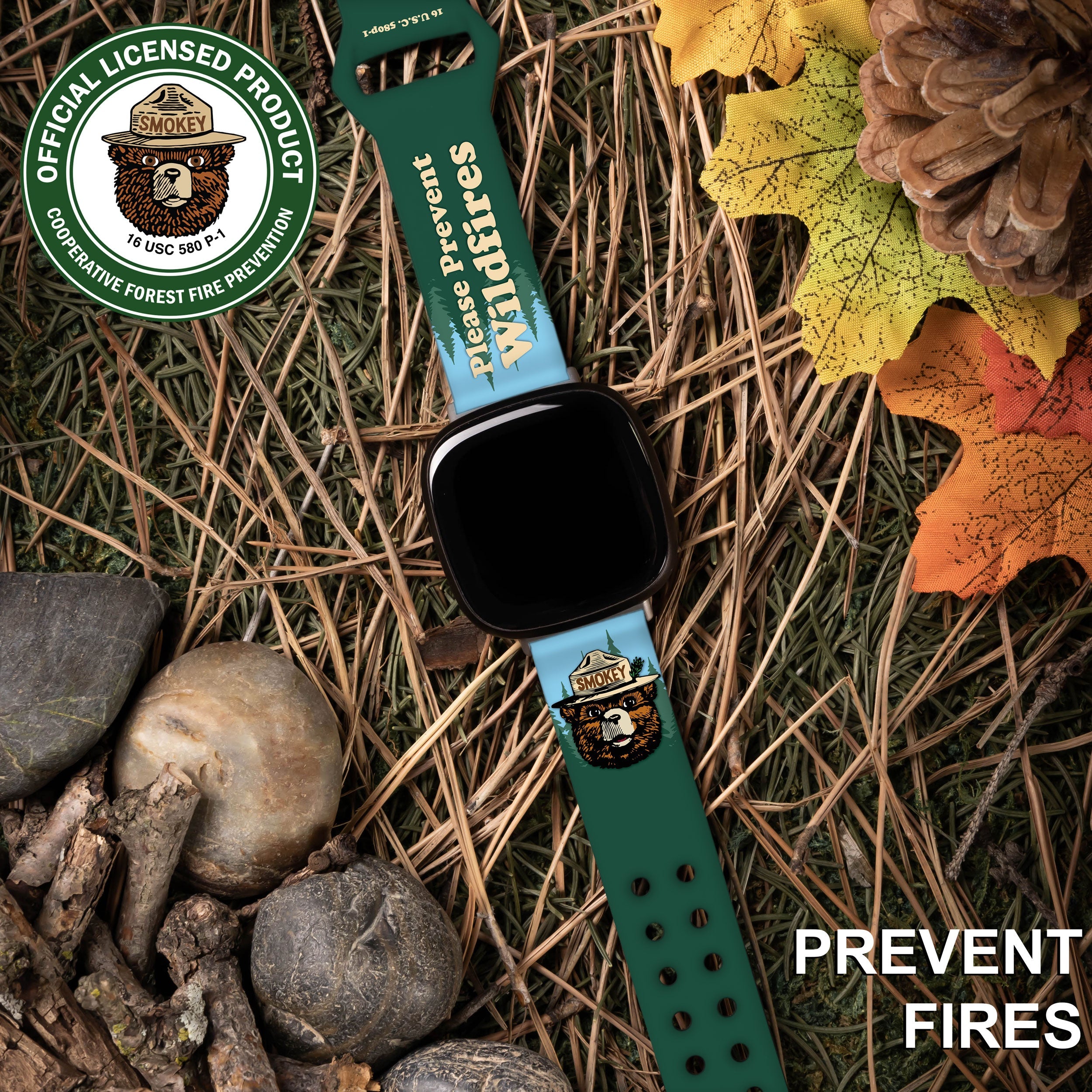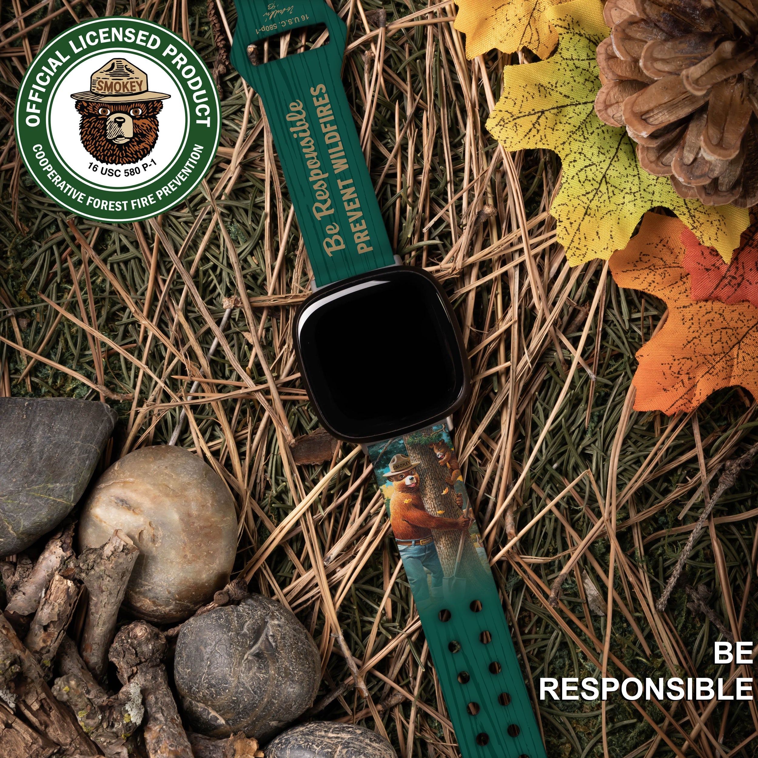 Smokey Bear Classic HD Fitbit Versa 3 & Sense Watch Band ‐ Be Responsible / Short