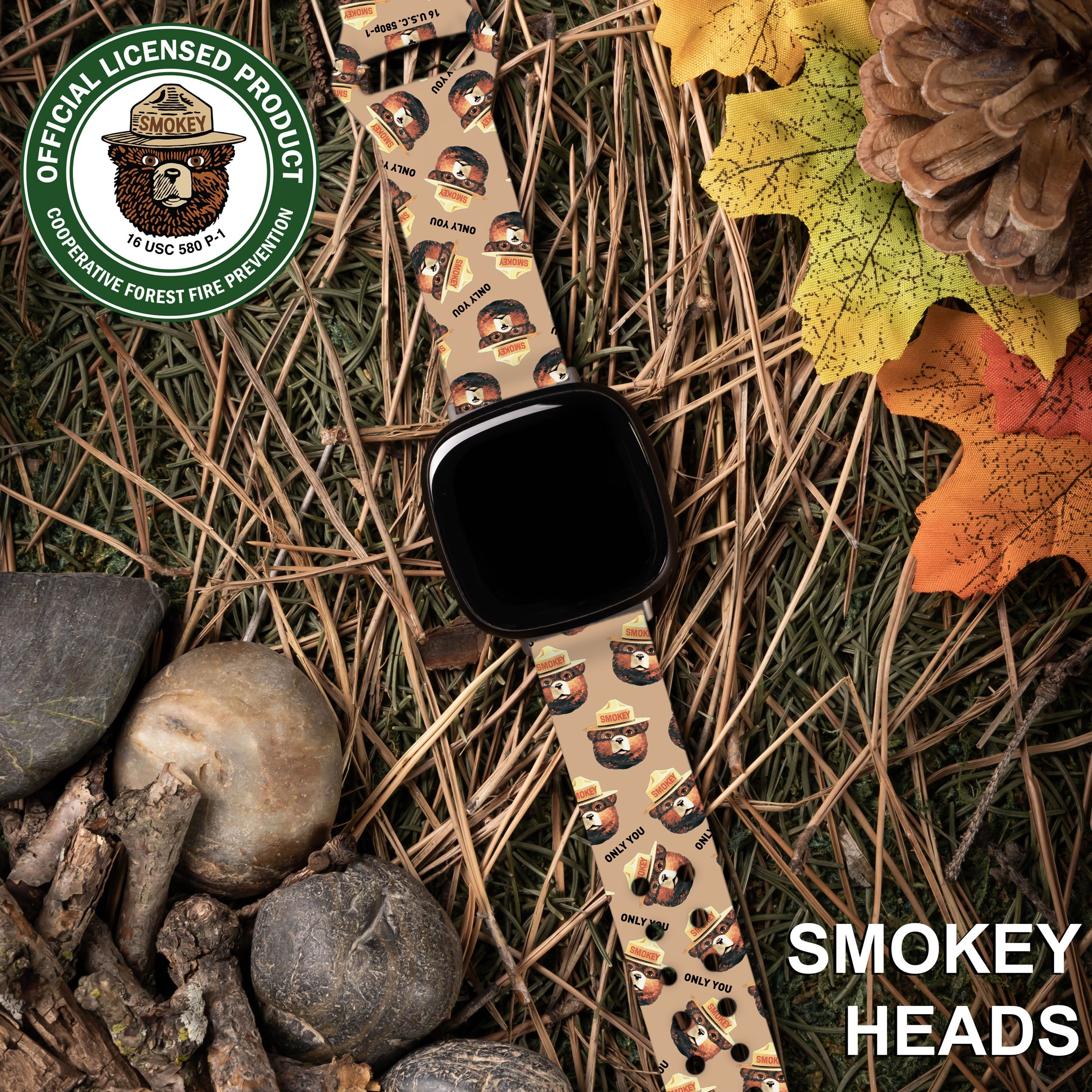Smokey Bear Classic HD Fitbit Versa 3 & Sense Watch Band ‐ Smokey Heads / Short