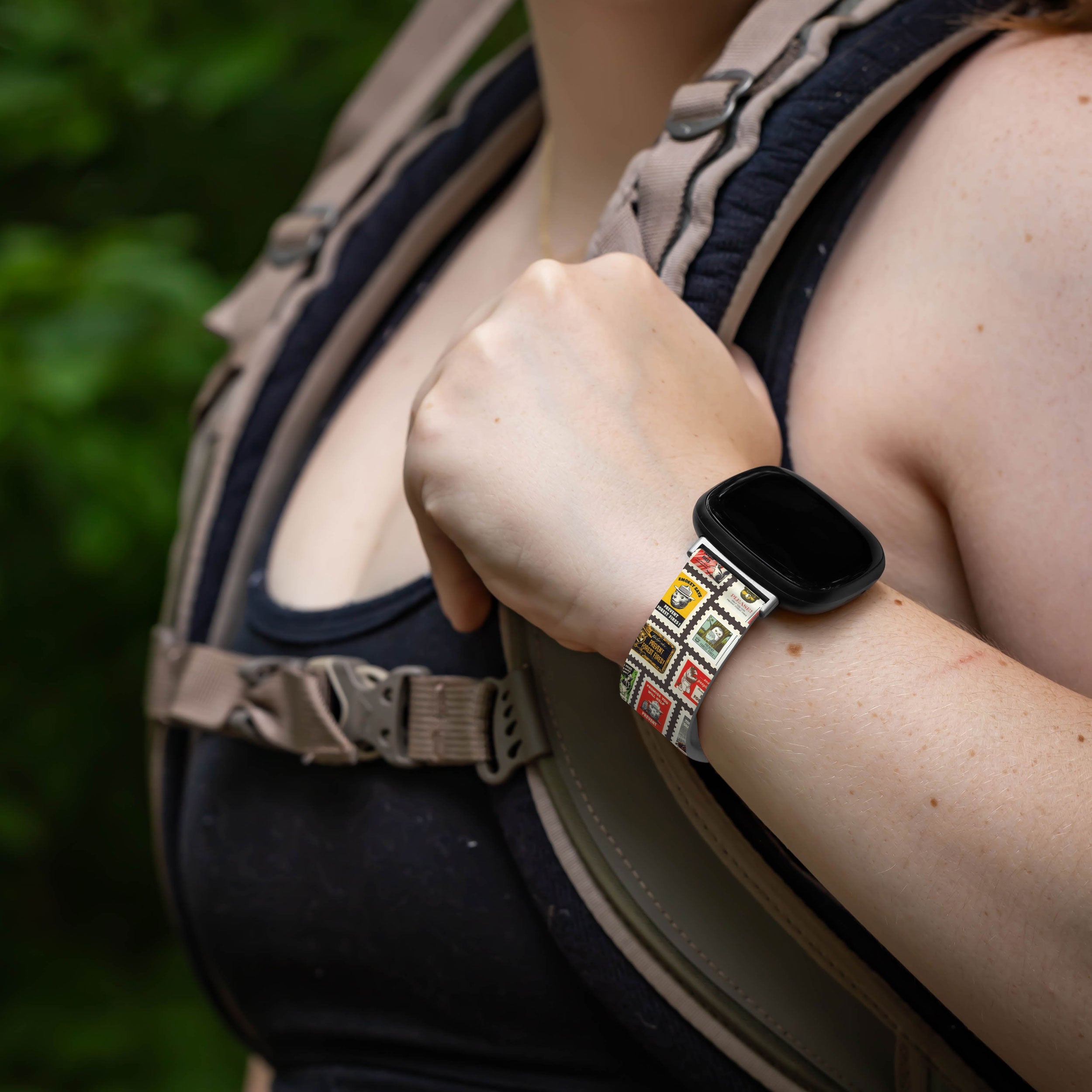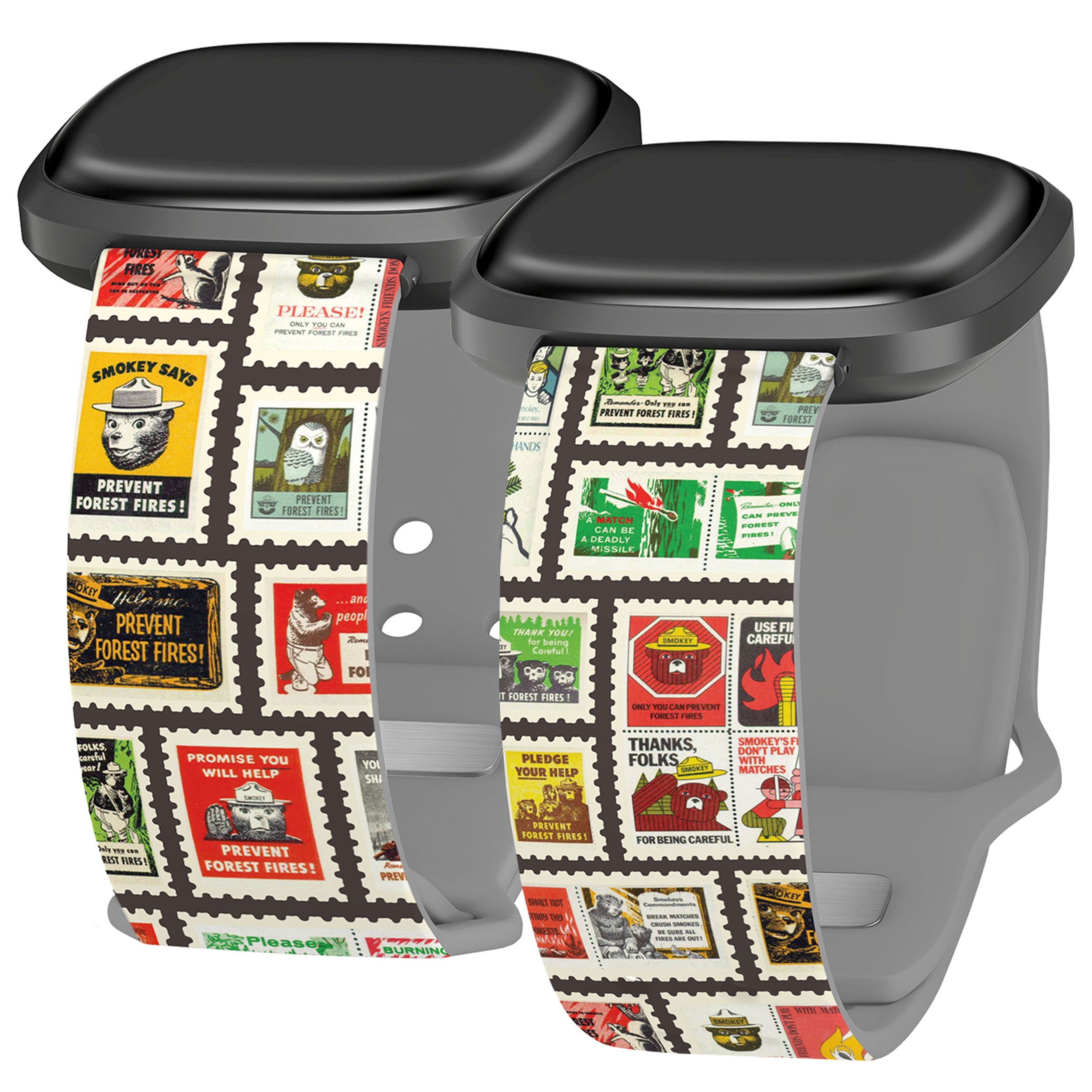 Smokey Bear Classic HD Fitbit Versa 3 & Sense Watch Band ‐ Smokey Stamps / Short