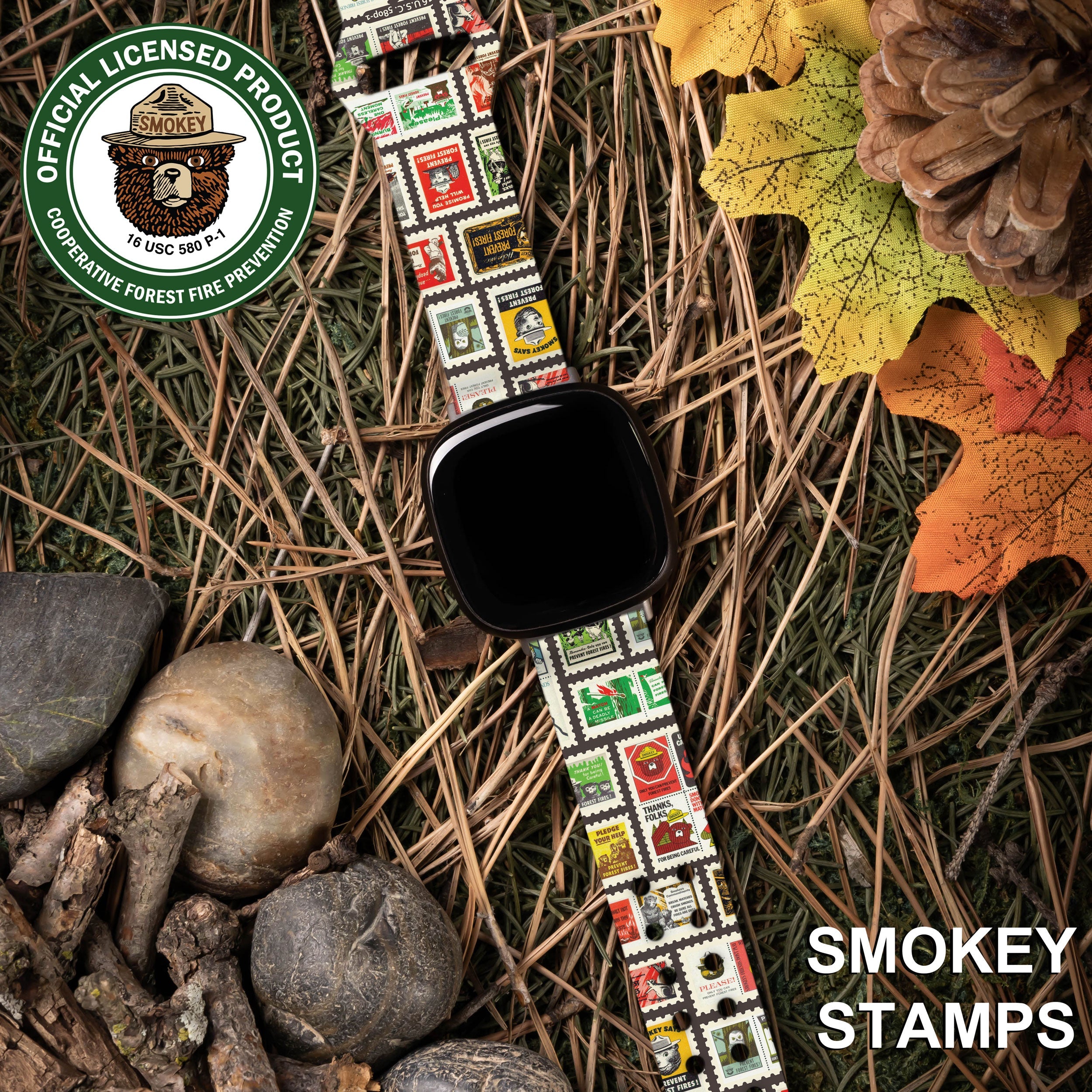 Smokey Bear Classic HD Fitbit Versa 3 & Sense Watch Band ‐ Smokey Stamps / Long