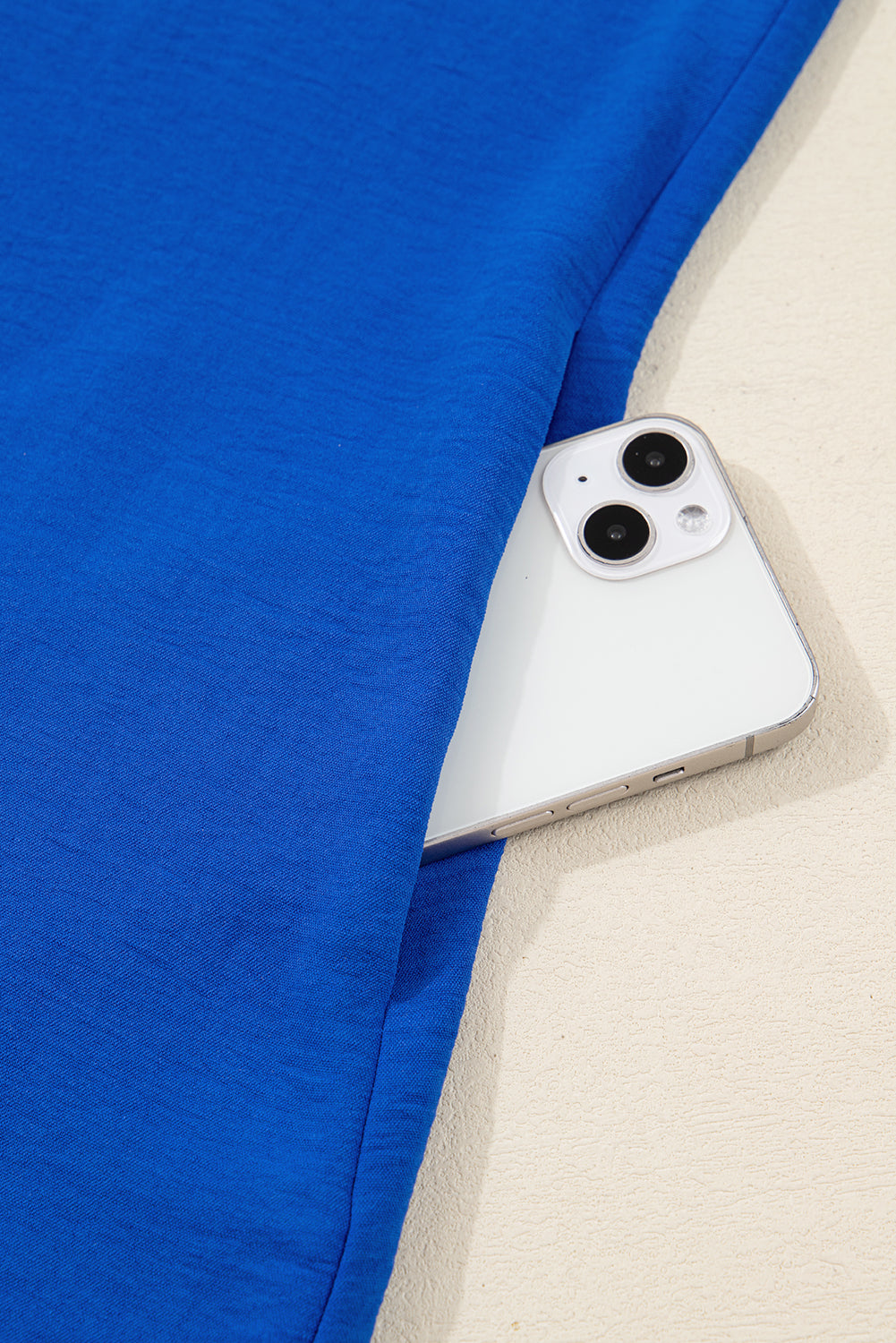 Solid Frilled V-Neck 3/4 Sleeve Mini Dress ‐ Sky Blue / L