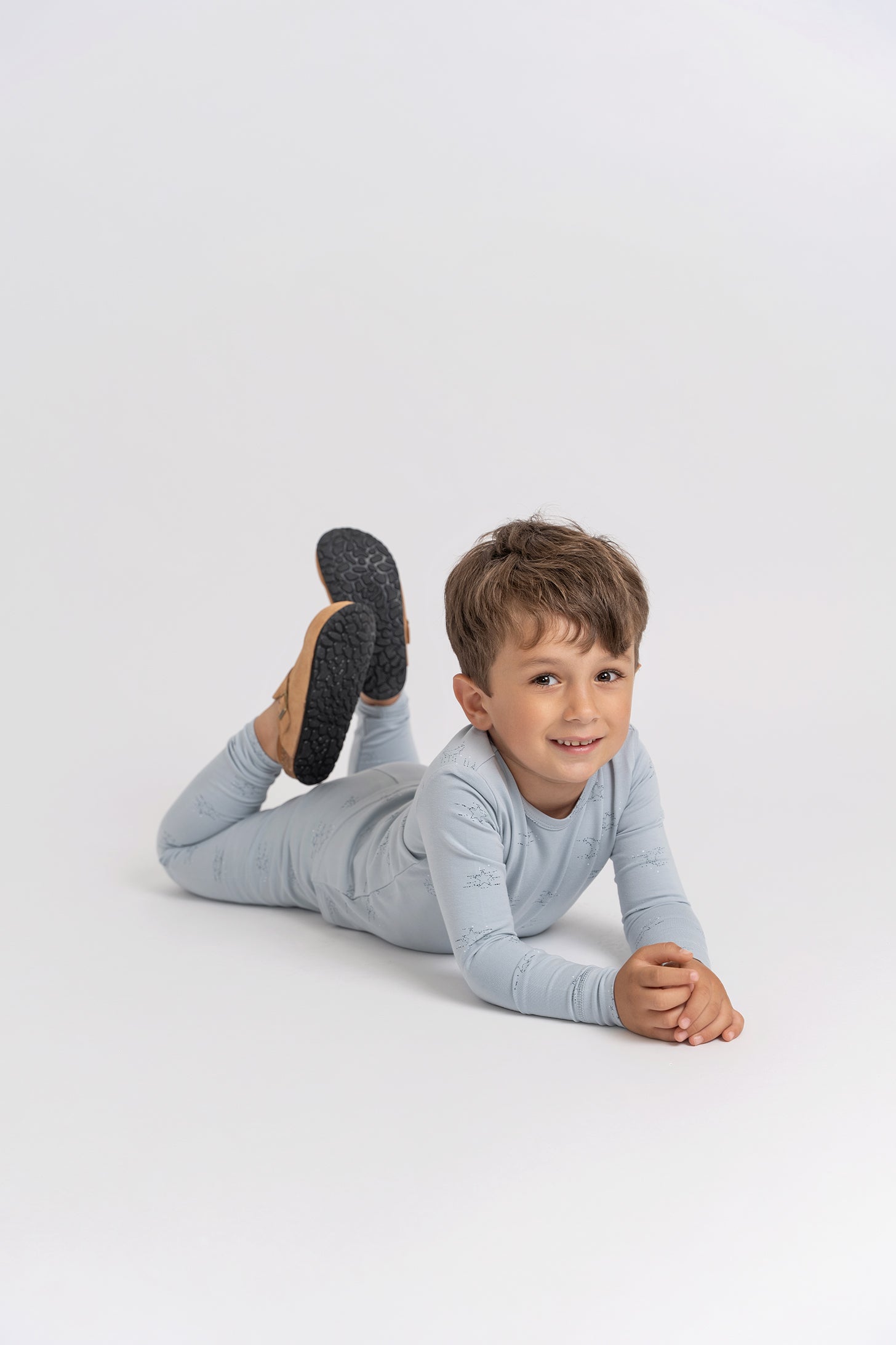 Kids all over stars print top with roundneck. Matching pants with covered elastic waistband. ֲ