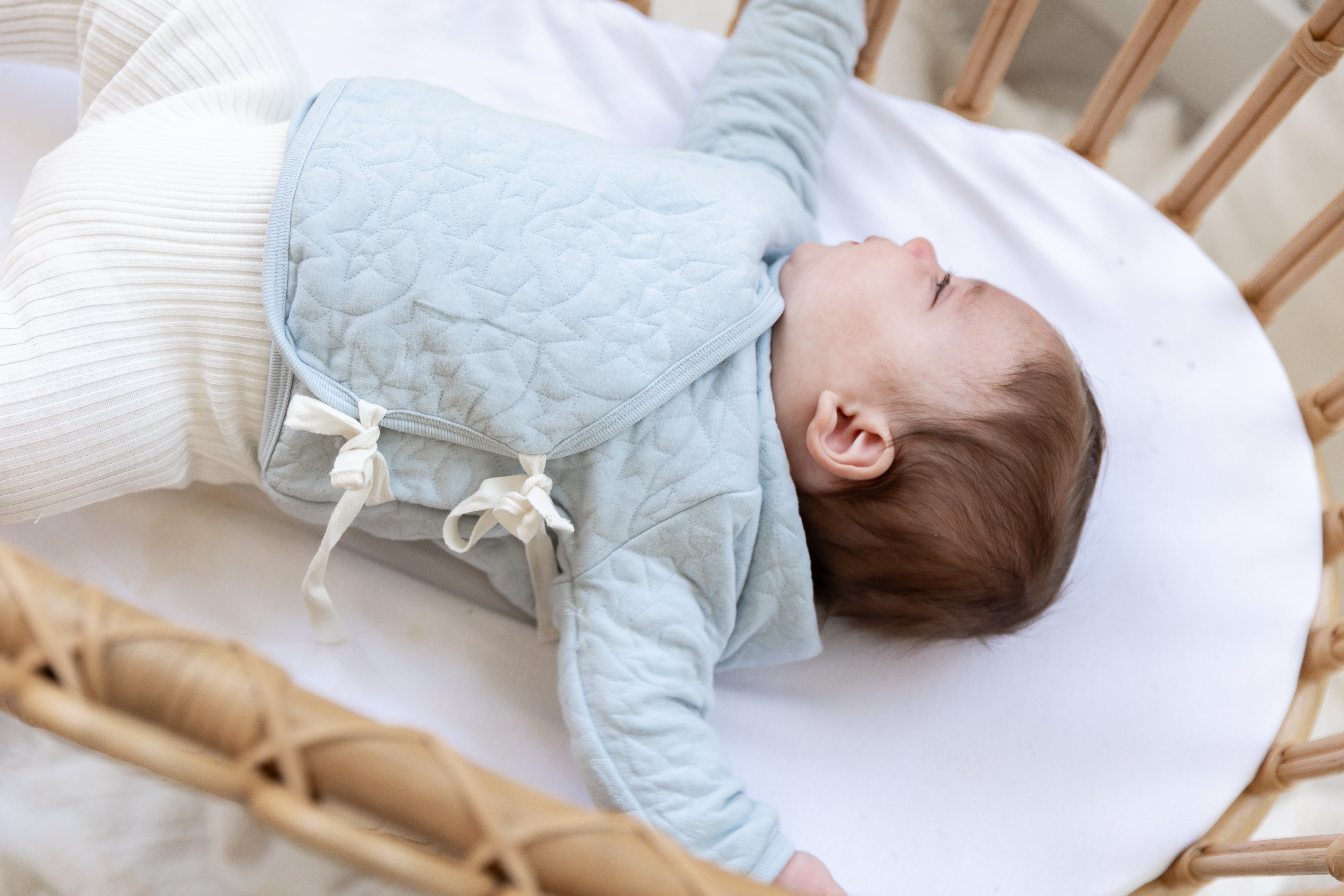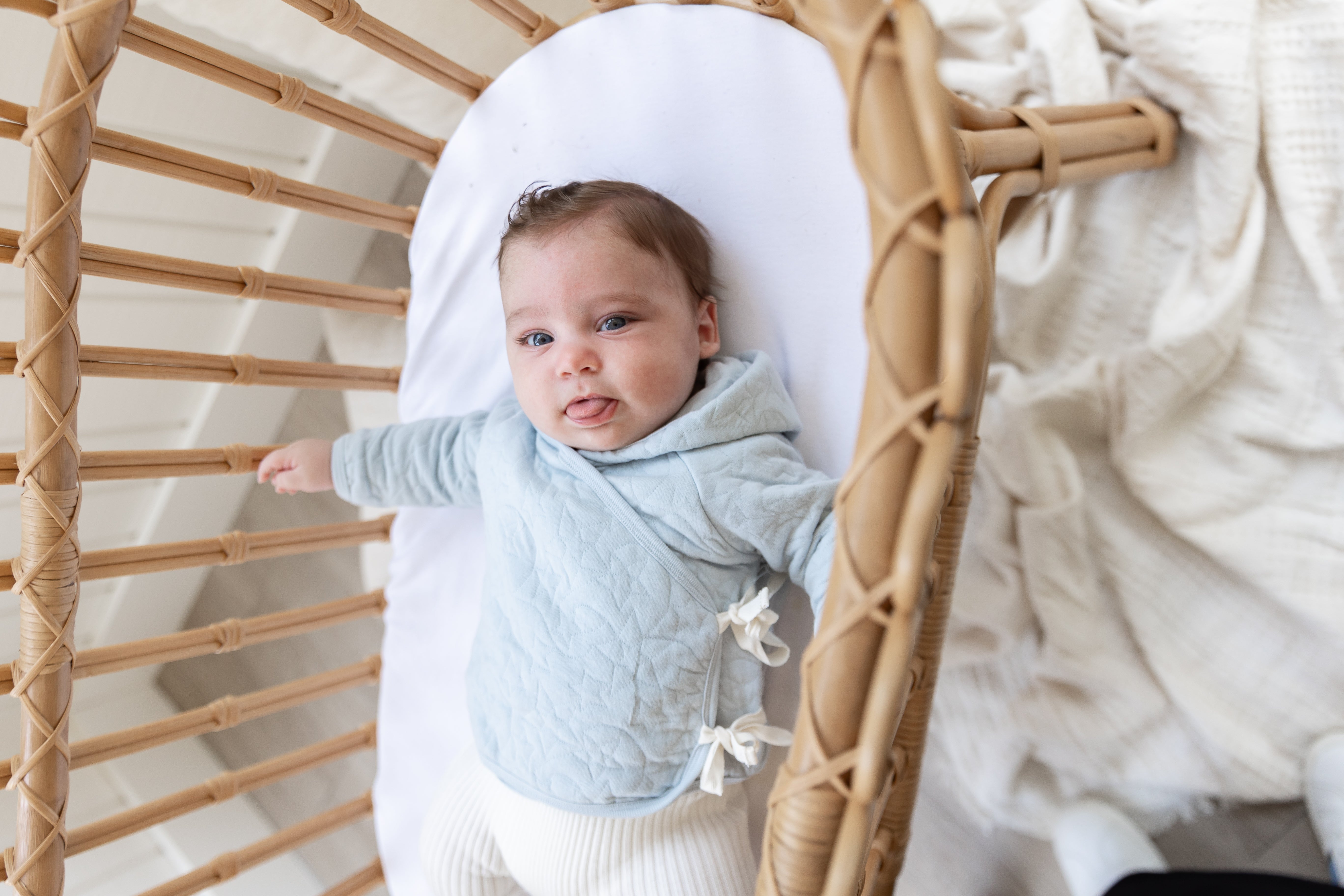 Baby boy and baby girl stars quilted jacket with snap at center front neck and underlayer with center front side tie. ֲ