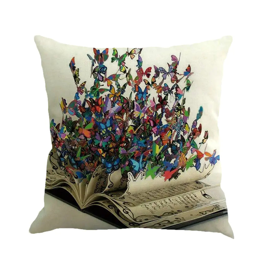 Crafted from high-quality linen, this cushion cover is not only durable but also adds a soft and natural feel to your furniture. The beautiful scenery pattern featuring vibrant butterflies will instantly enliven your space, making it a perfect statement piece.