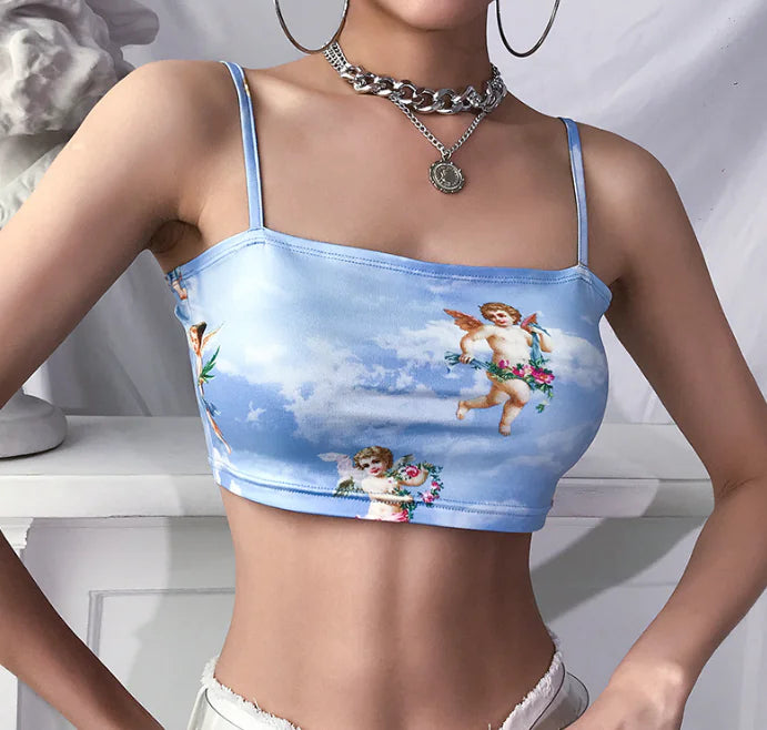 Style Loft Collection Rose Angels Cropped Tank Top ‐ Blue / S