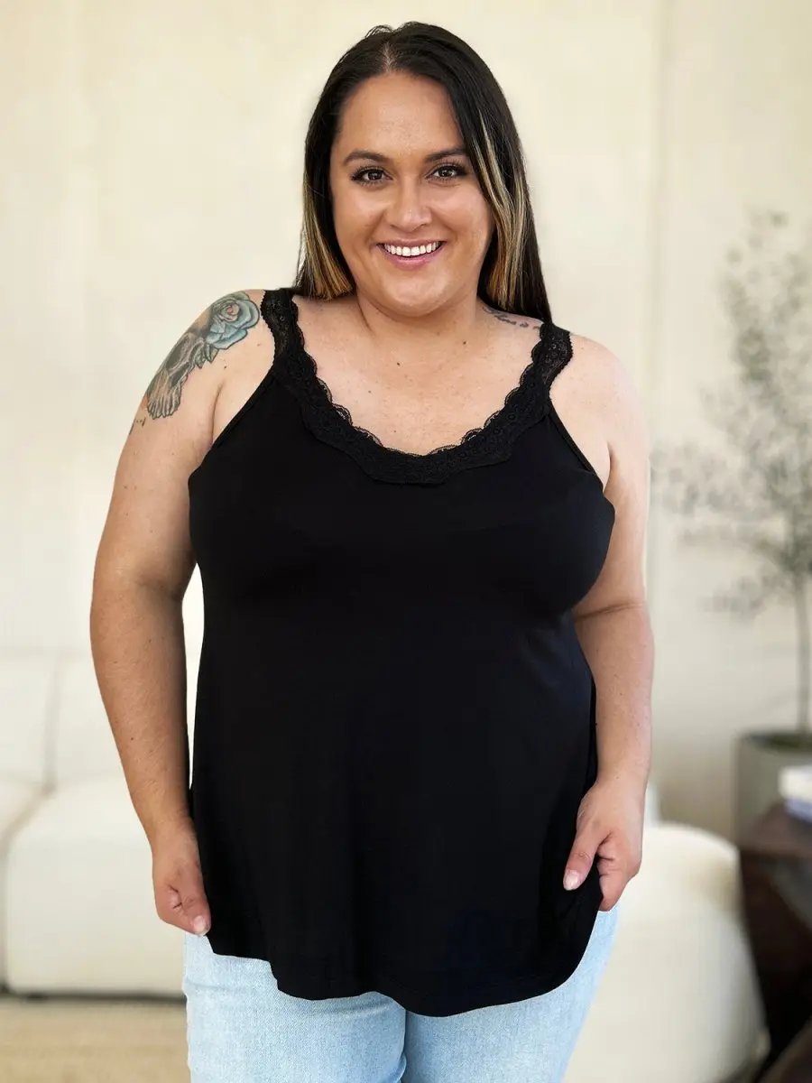Trendsi Basic Bae Full Size Lace Detail V-Neck Cutout Cami ‐ Black / L