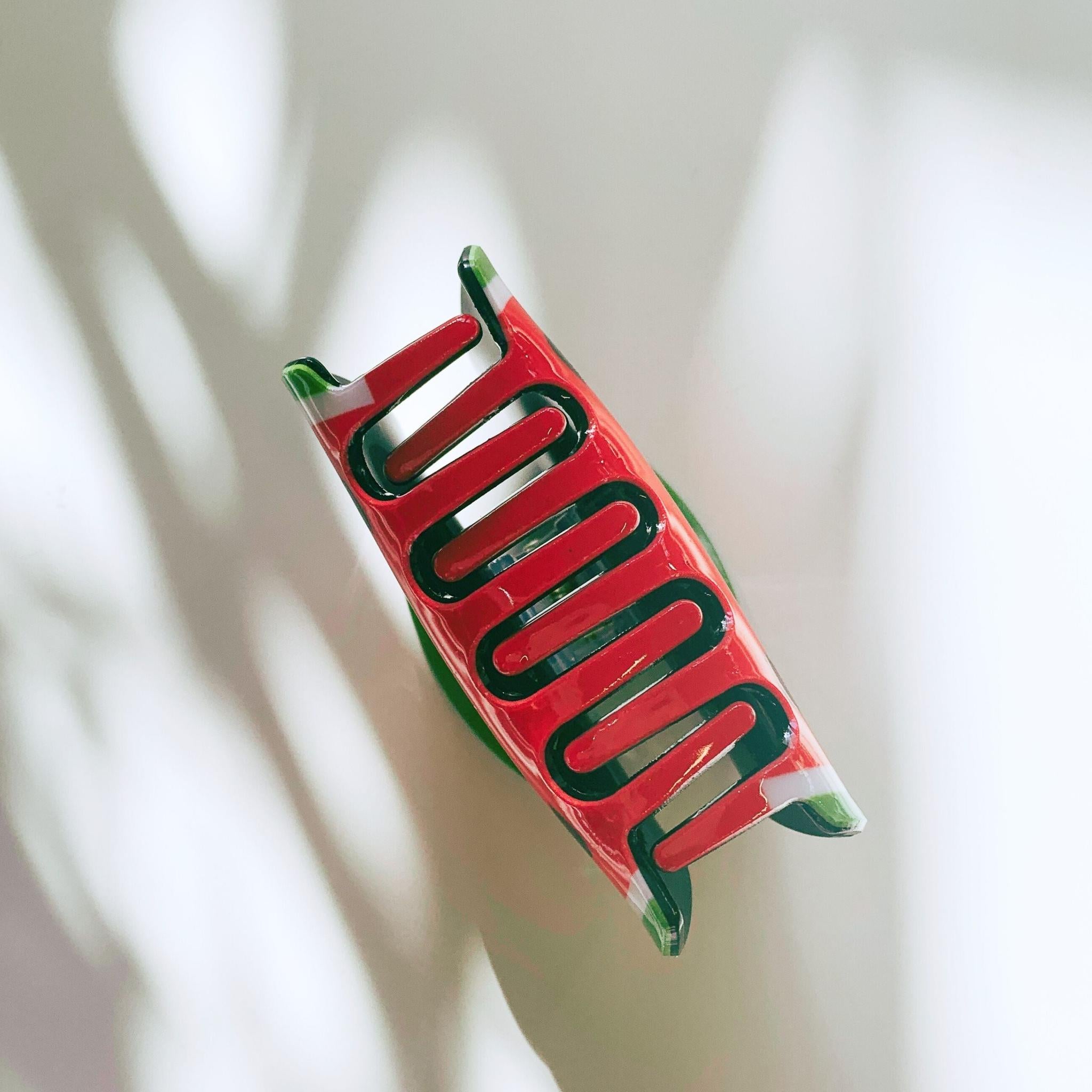 Get a grip on your hair with Velvet Claws Shaped Watermelon Hair Claw! 🍉 Perfect for holding hair in place, say goodbye to messy hair and hello to style with ease. 🙌
