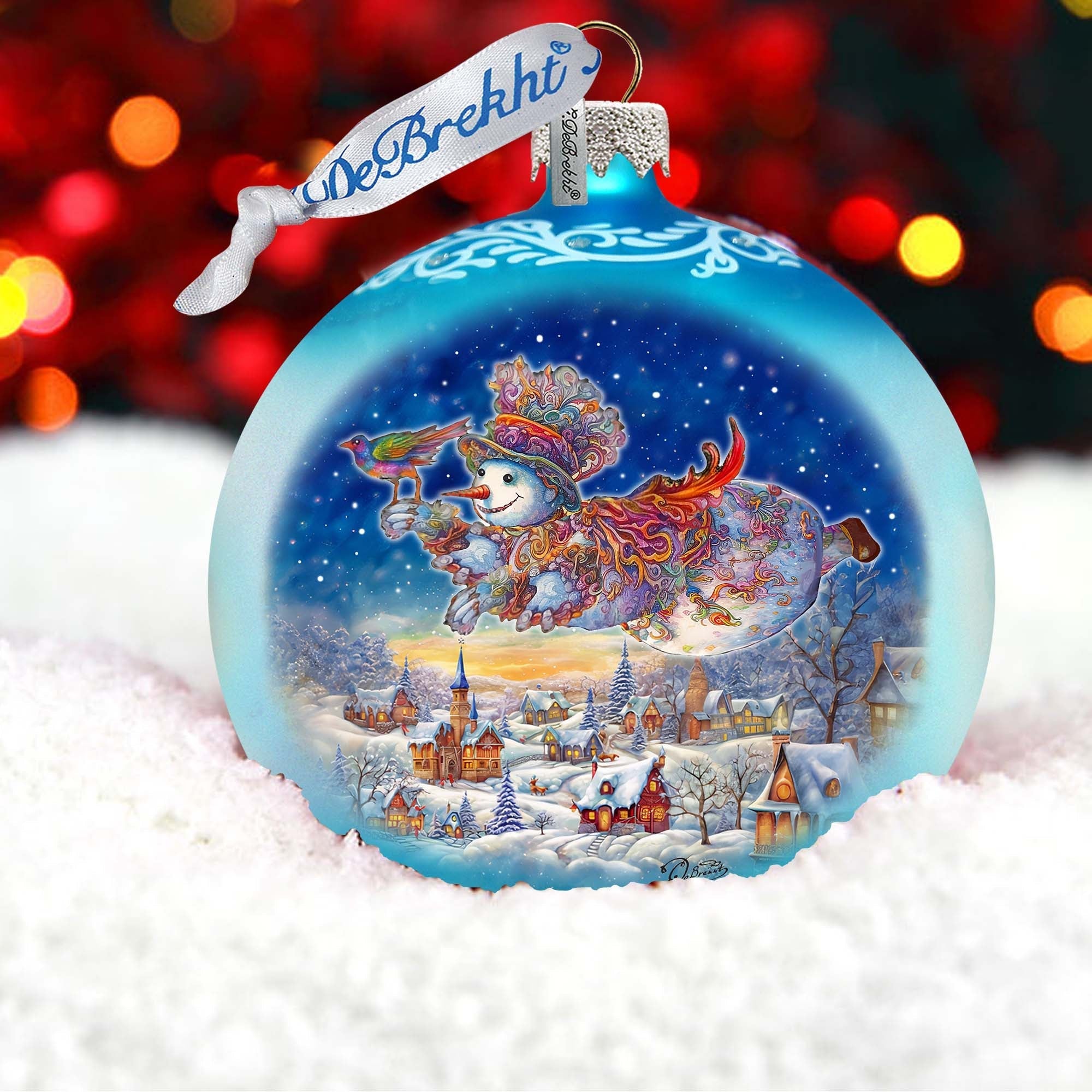 This unique Winter Skies Adventure Ball Glass Ornament by G. Debrekht features a festive flying snowman to add a touch of winter wonder to your holiday Decor. With hand-painted details and intricate craftsmanship, this ornament is a perfect gift for any special occasion.