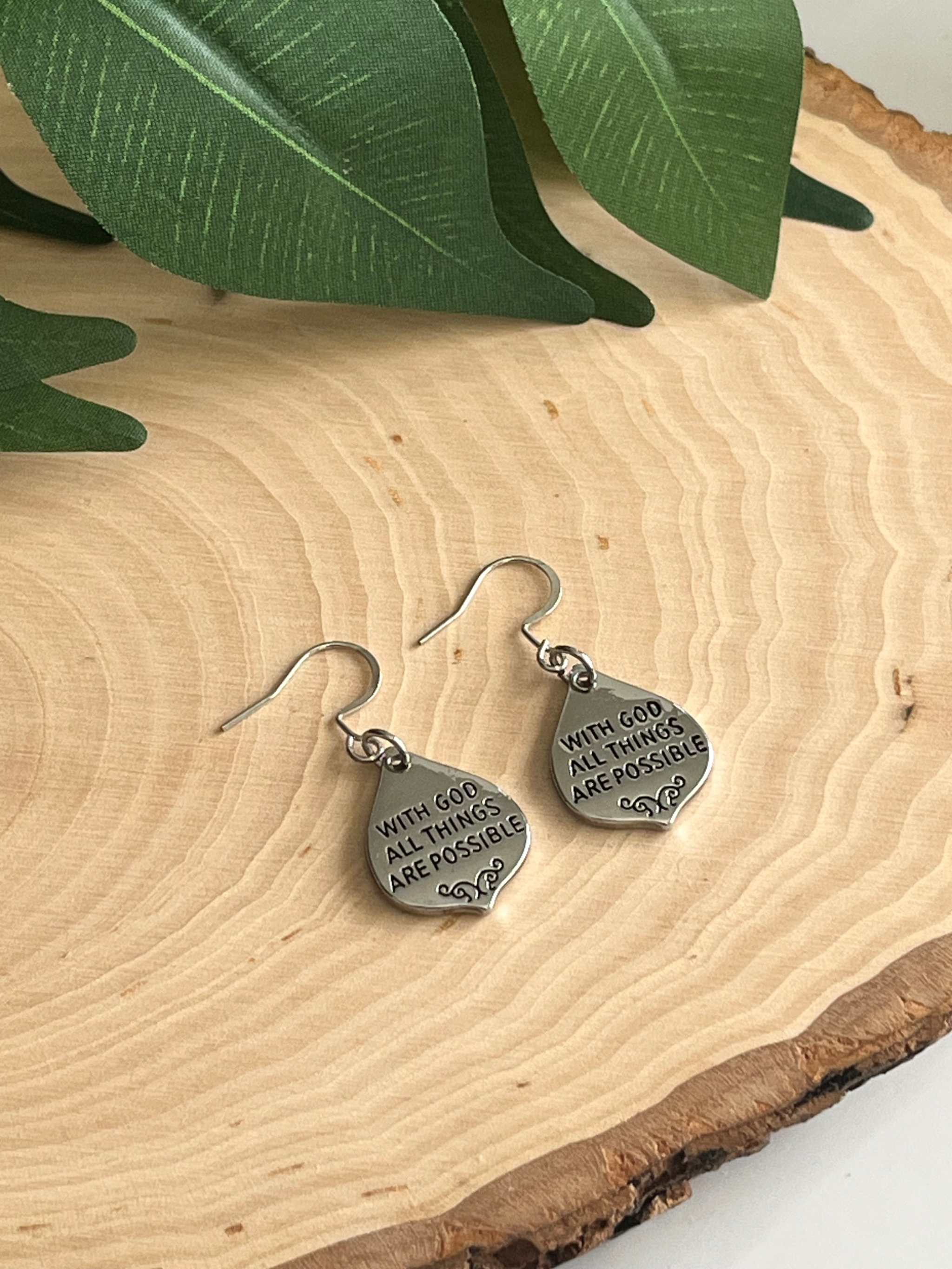 Add these With God All Things Are Possible Silver Earrings to your collection today!