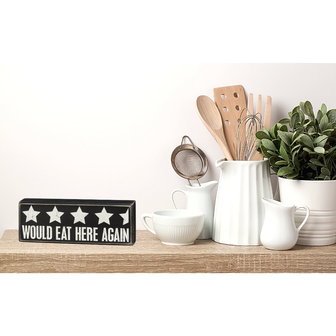 Would Eat Here Again 4.5 Stars Wooden Box Sign | 9" x 3.25"