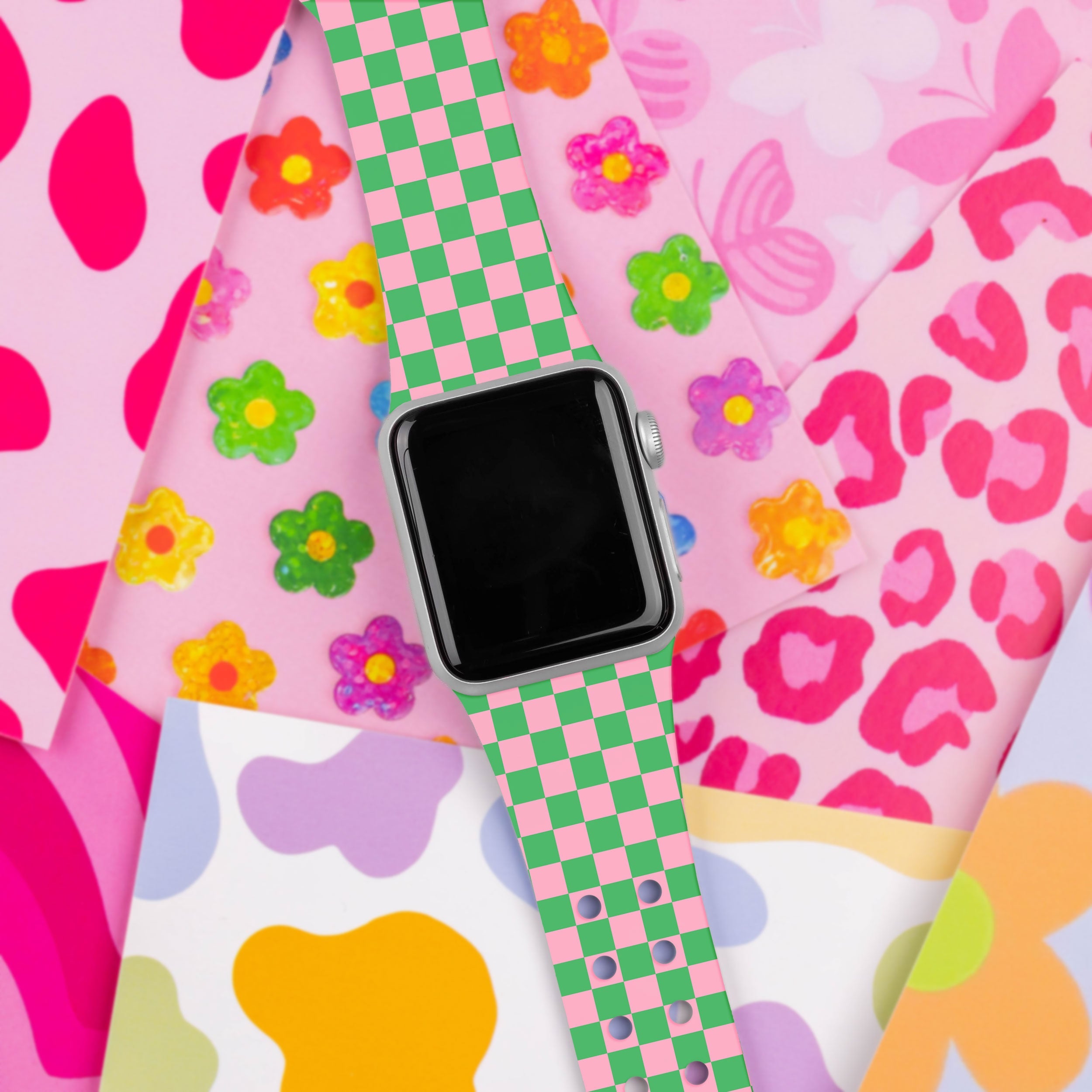 Y2K HD Apple Watch Band ‐ Floral Checkerboard / 42/44/45/49mm(46mm Series 10) / Short