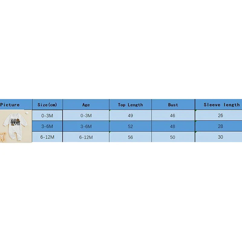 0-3M Length: 19.29 Bust: 18.11 Sleeve: 10.24 Advised Age: 0-3 Months