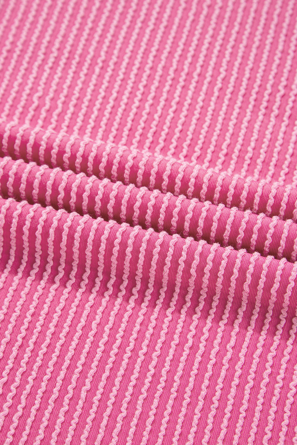 Bonbon Spiral Ribbed Exposed Seam Detail Plus Size Long Sleeve Top