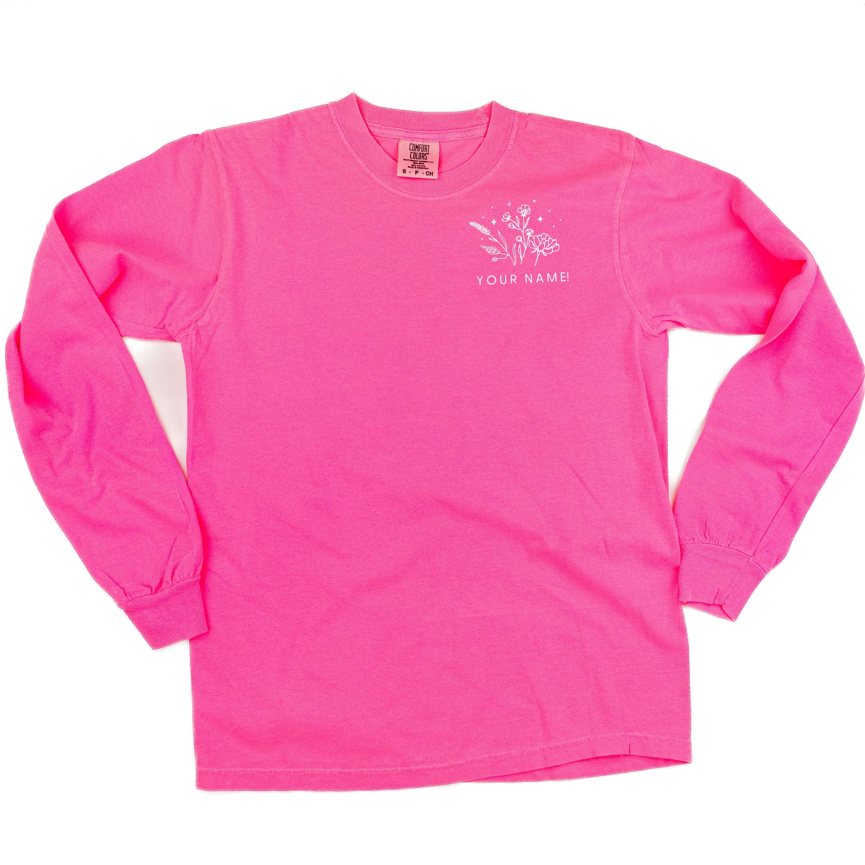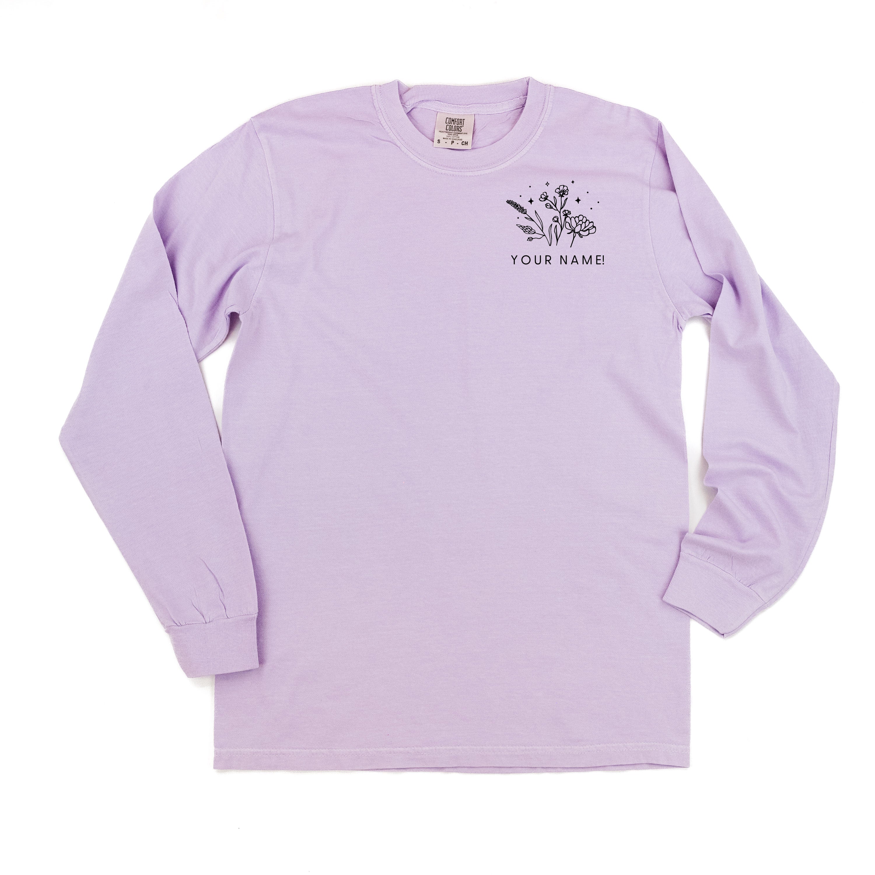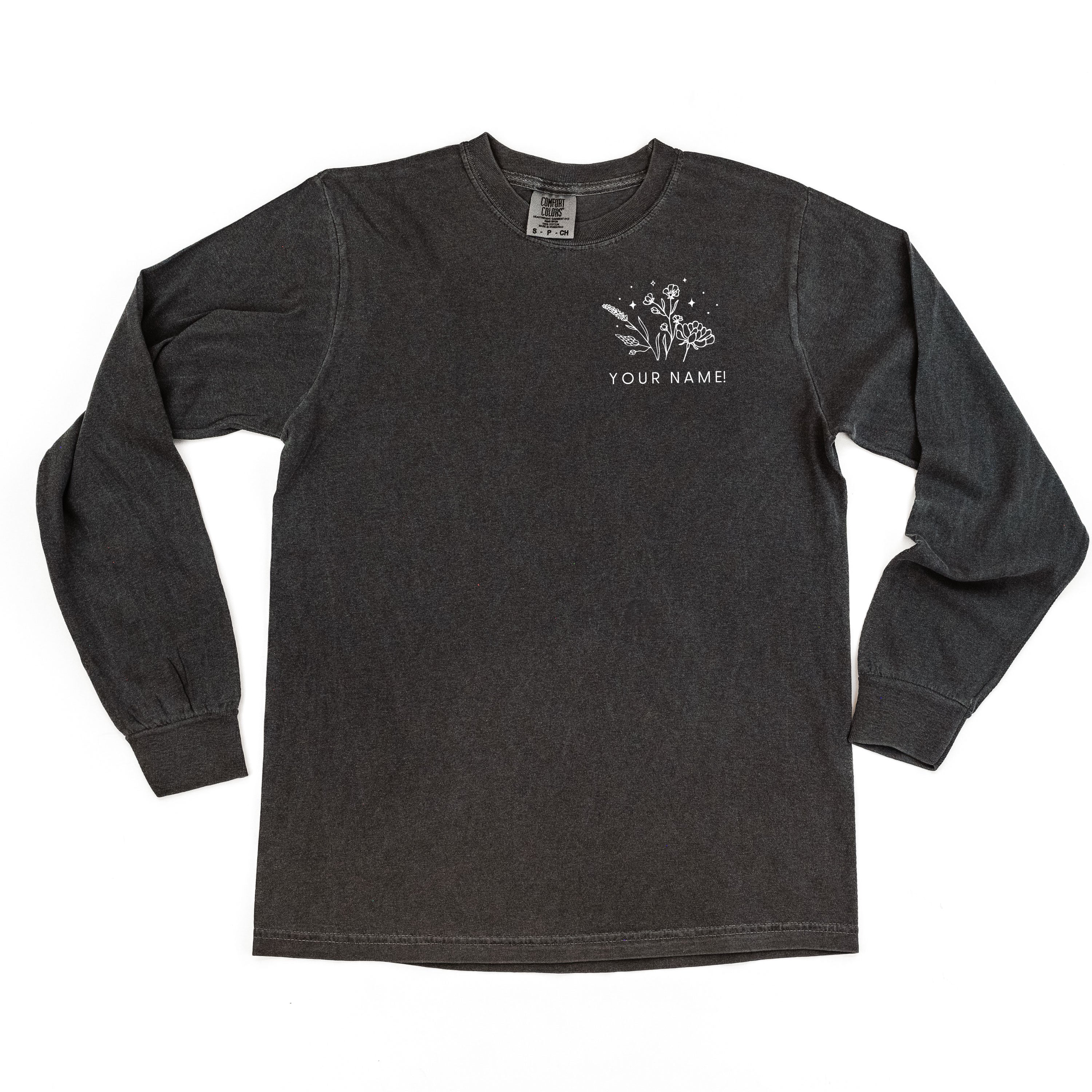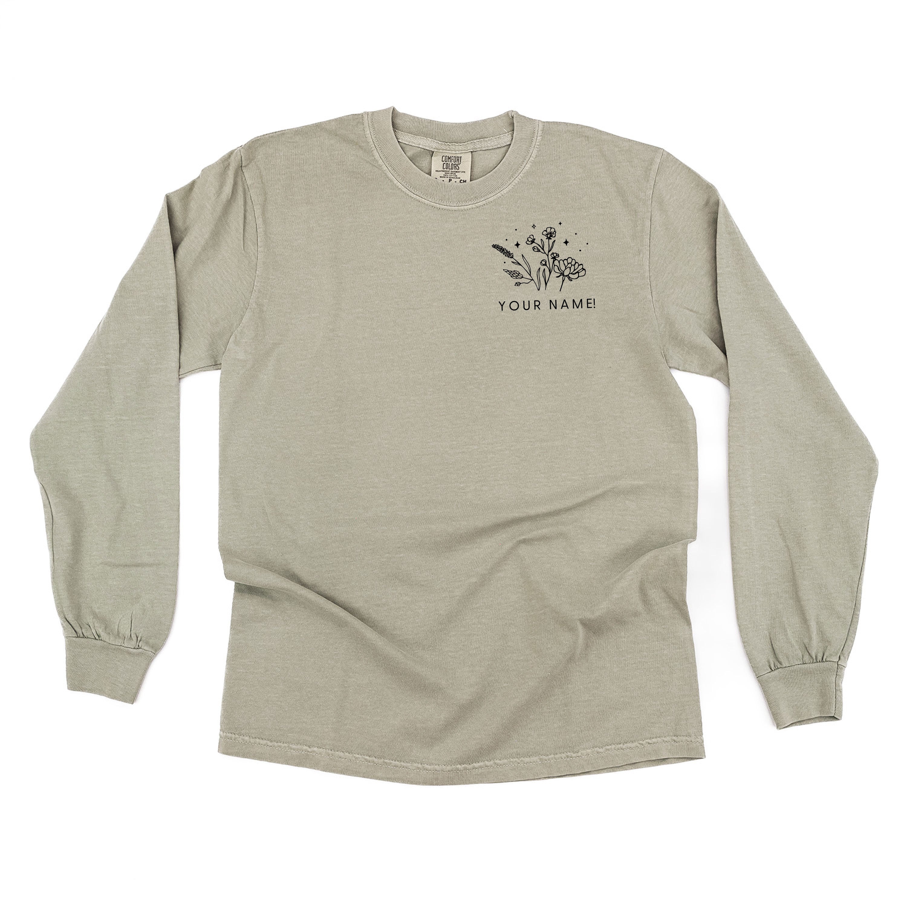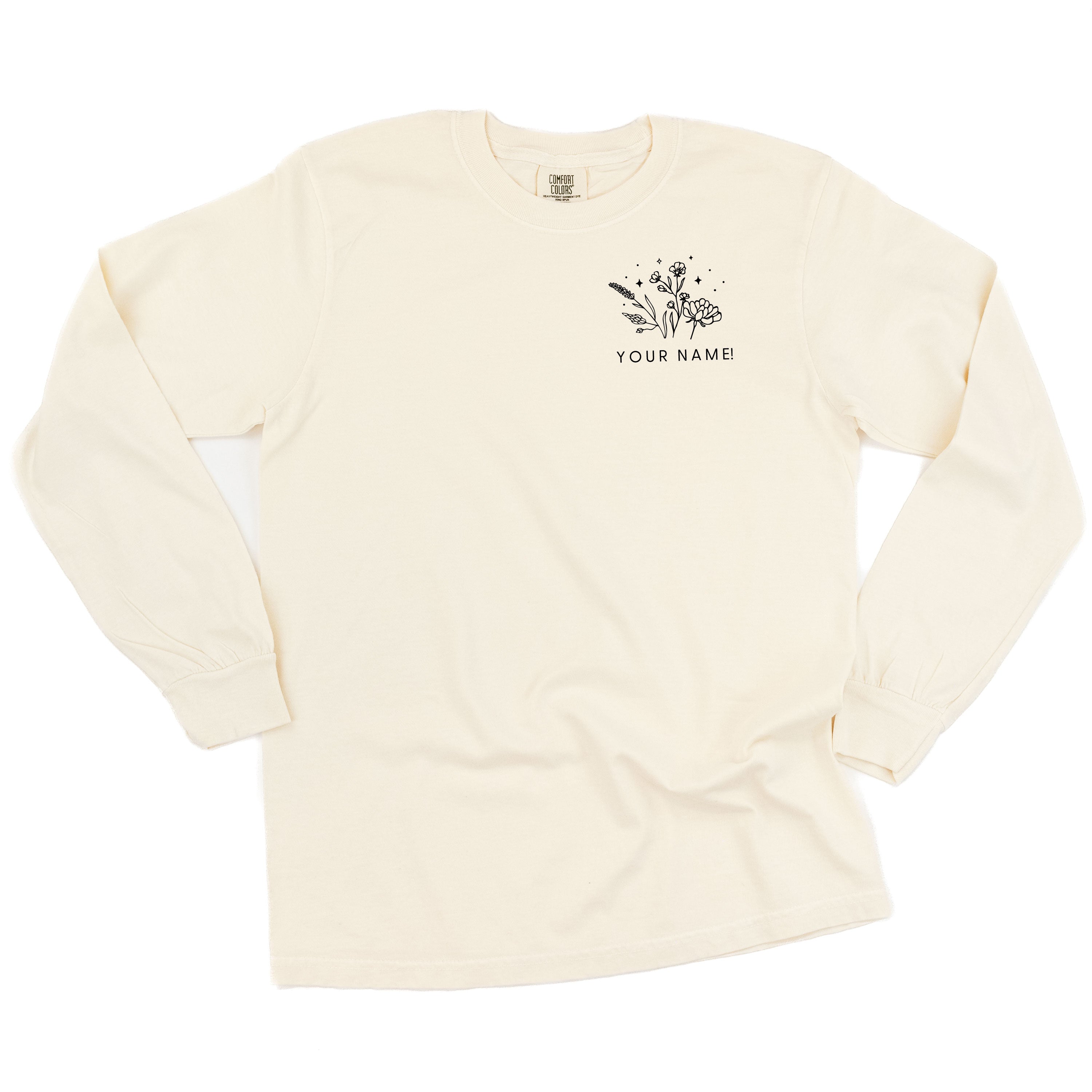 Custom Name - Bouquet (pocket) - (PERSONALIZE IT) - Long Sleeve Comfort Colors Tee