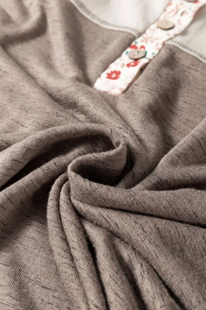 Trendsi Floral Half Button Women's Casual Long Sleeve T-Shirt - Soft & Stylish ‐ Mocha / M