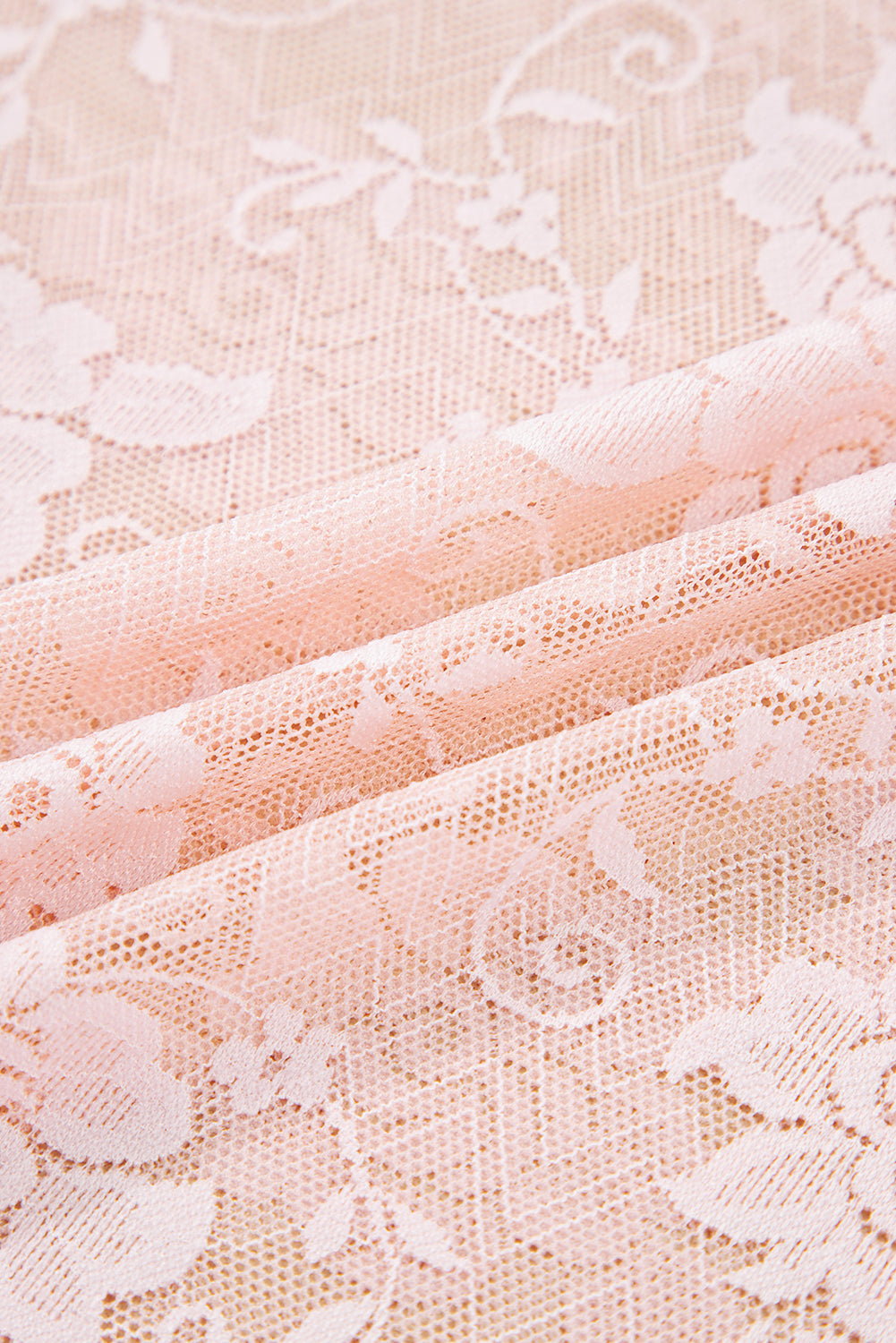 Floral Lace Sheer Mesh Long Sleeve Top ‐ Apricot Pink / XL