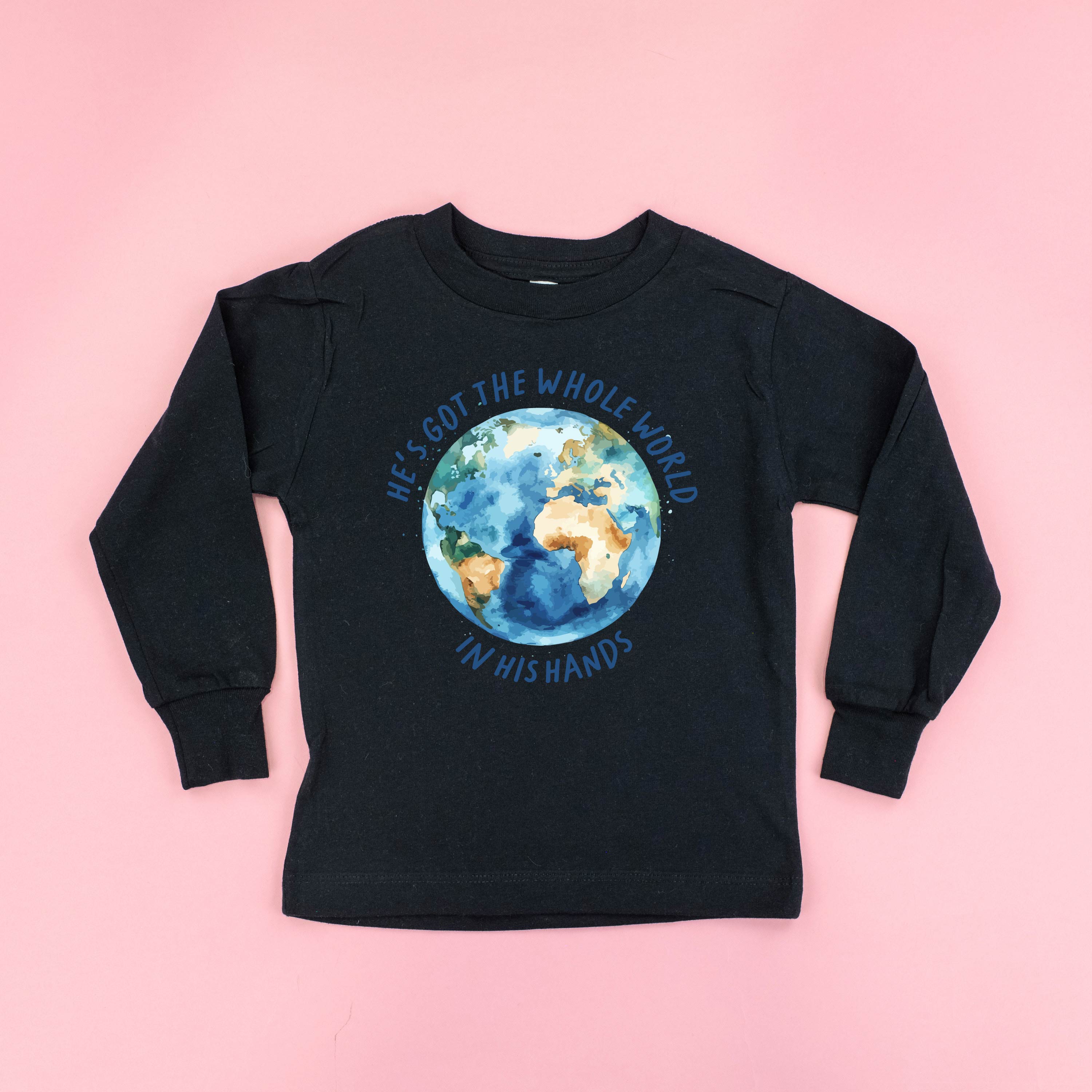 He’s Got The Whole World In His Hands - Child Long Sleeve Tee ‐ 3T / Black