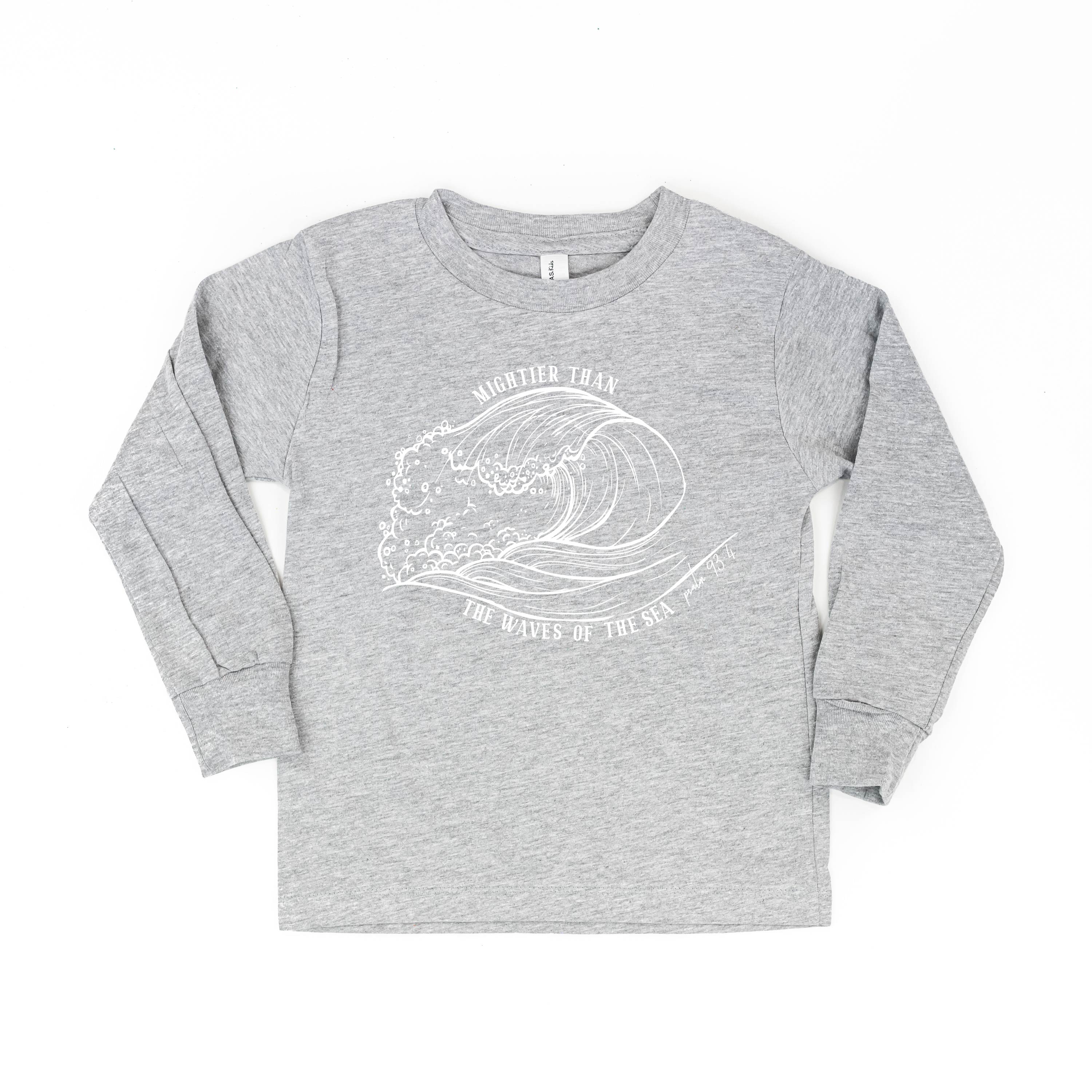 Mightier Than The Waves Of The Sea - Child Long Sleeve Tee ‐ Youth M / Gray w/ White