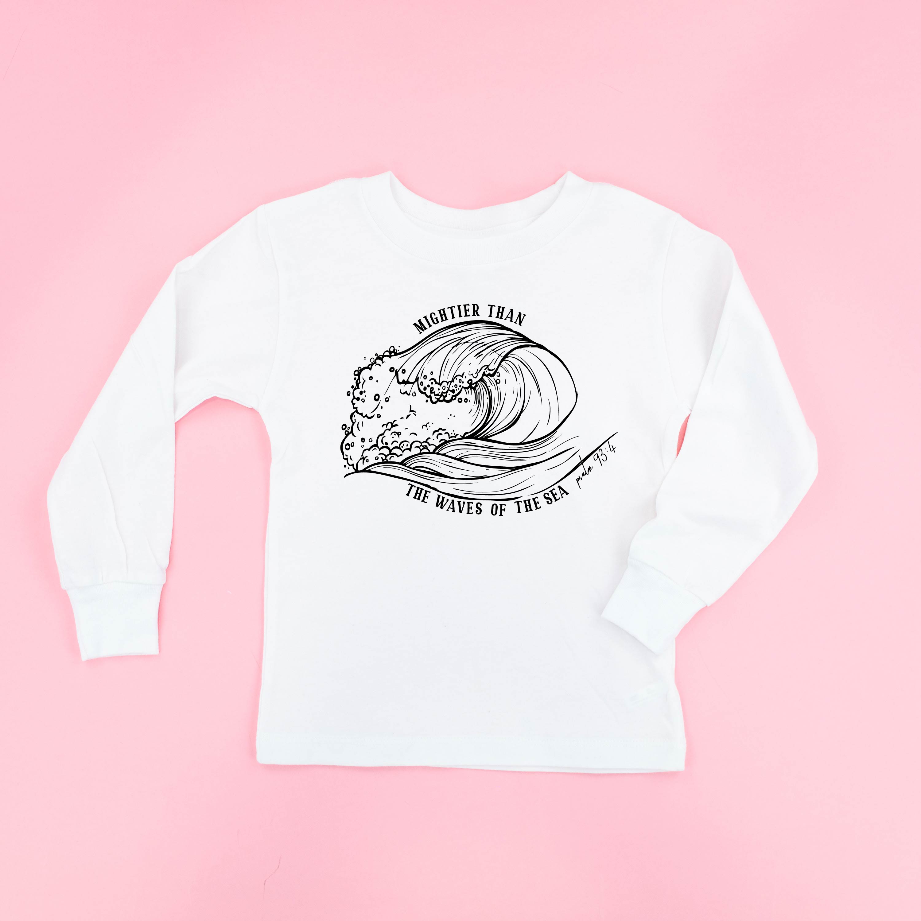 Mightier Than The Waves Of The Sea - Child Long Sleeve Tee ‐ 4T / White w/ Black