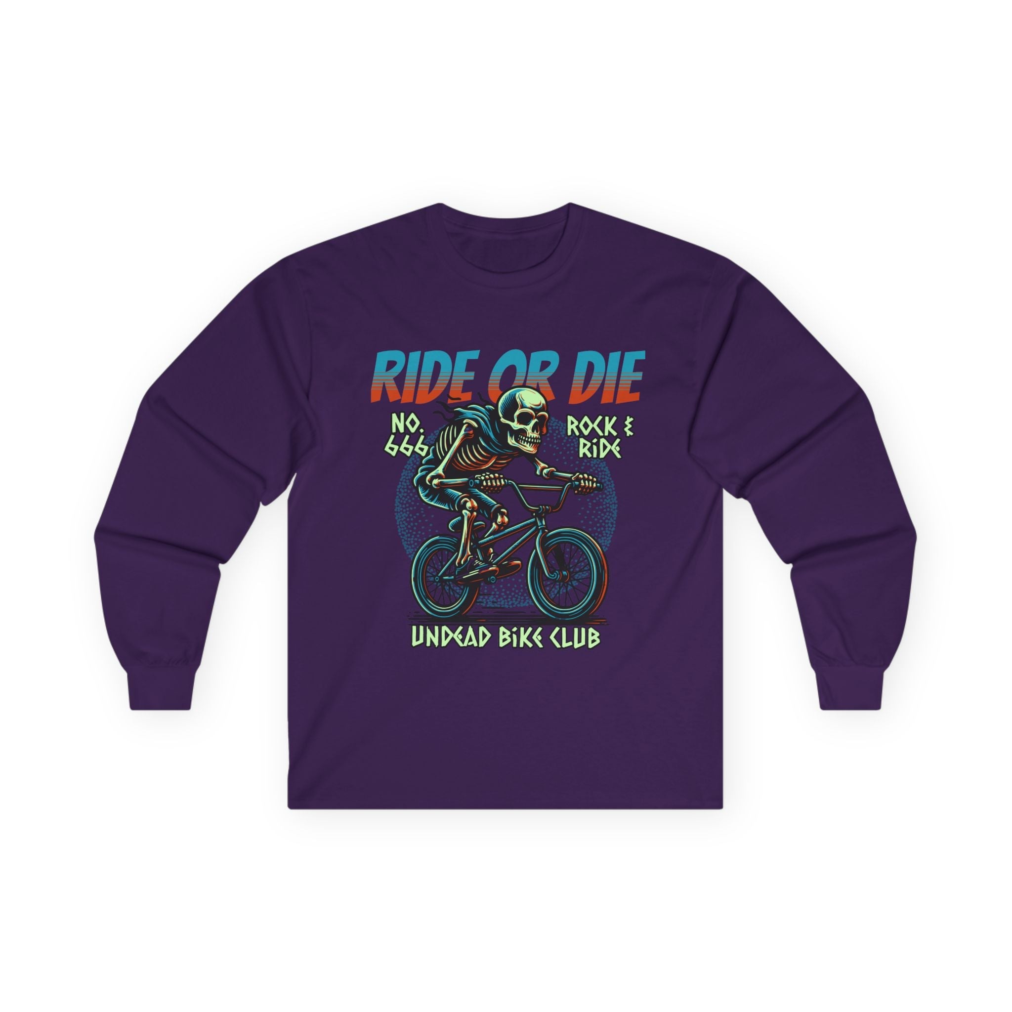 Ride Or Die - Unisex Cotton Long Sleeve Tee (Front) ‐ Purple / L