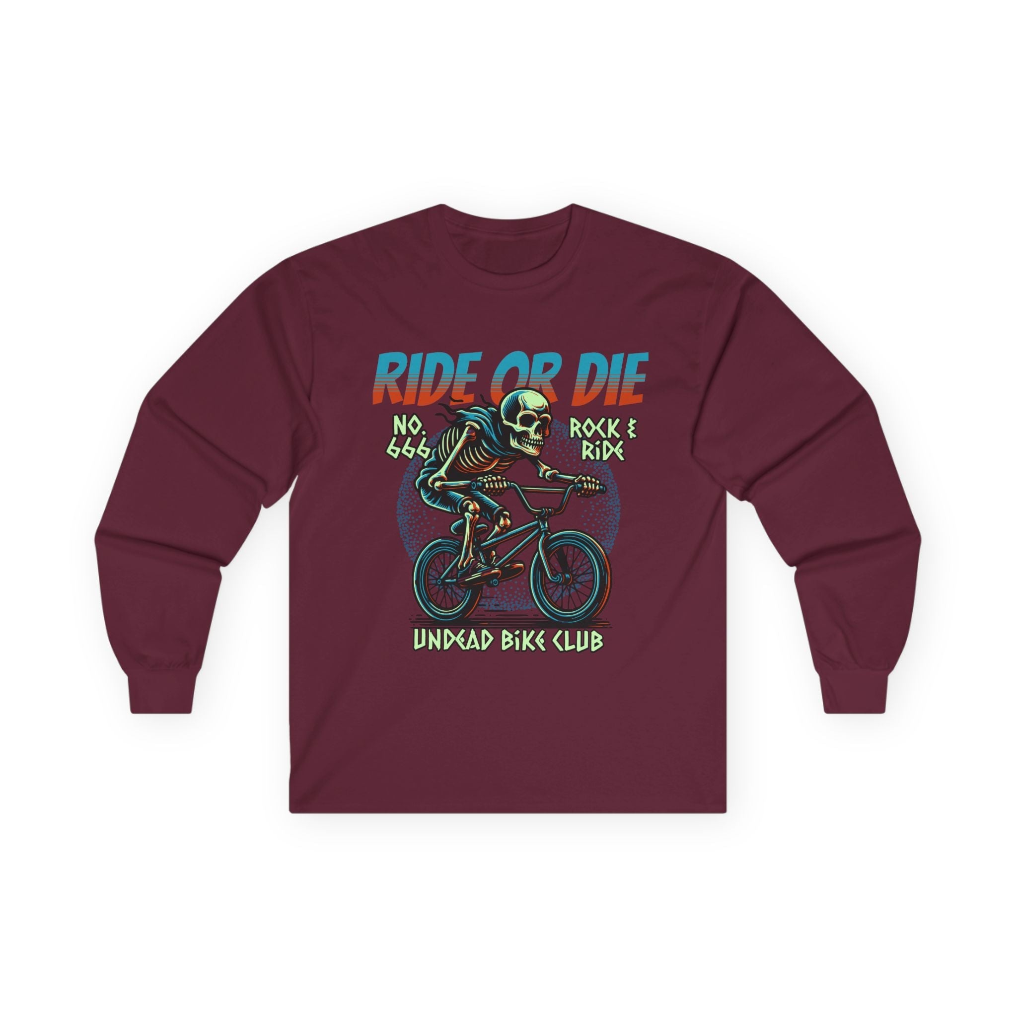 Ride Or Die - Unisex Cotton Long Sleeve Tee (Front) ‐ Maroon / L