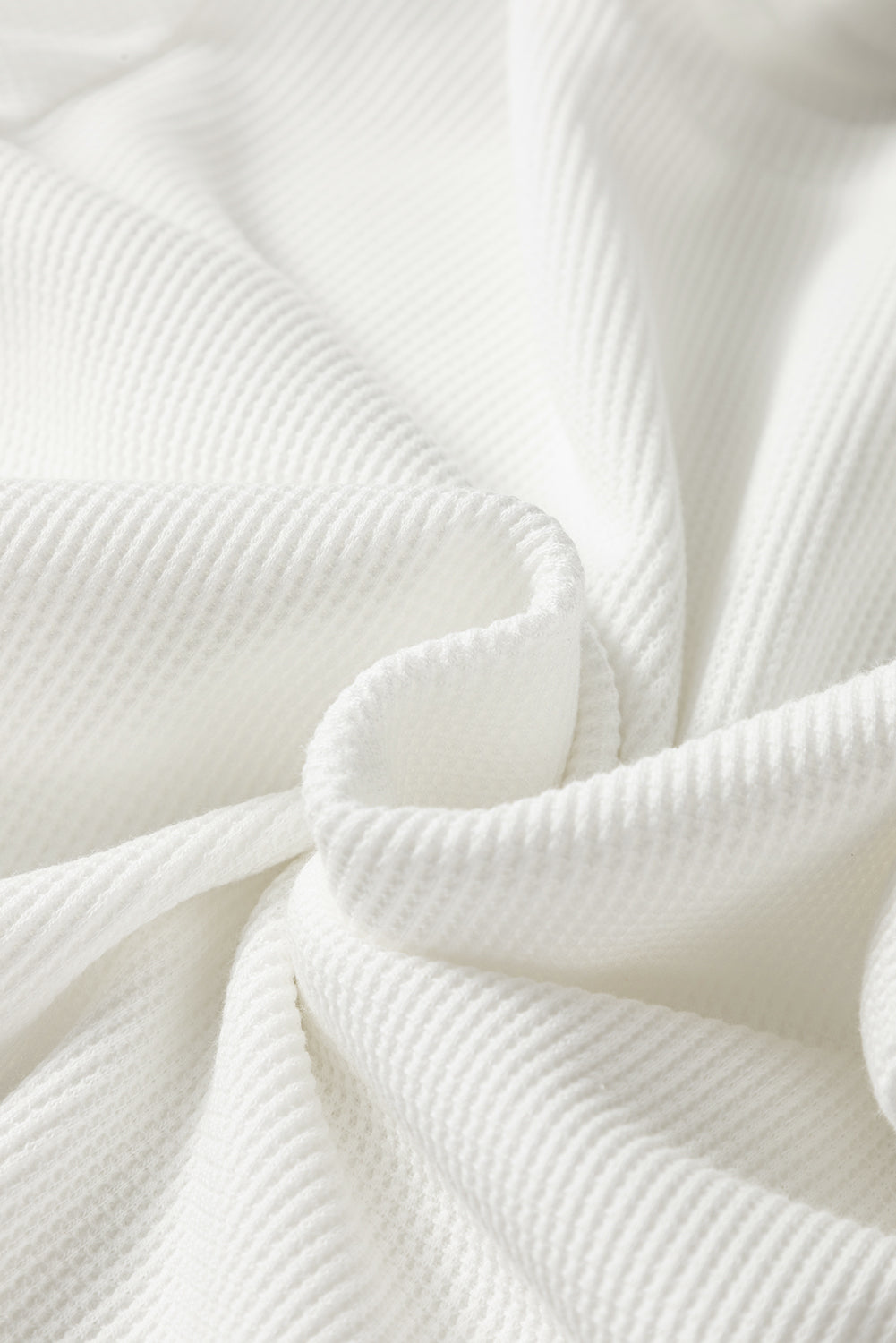 Solid Waffle Knit Long Sleeve Top ‐ White / XL