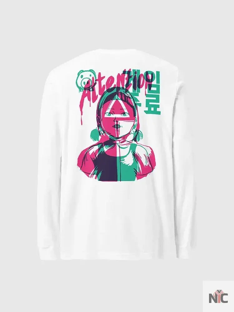 Squid Game Attention Long Sleeve White T-Shirt ‐ 3XL / Female