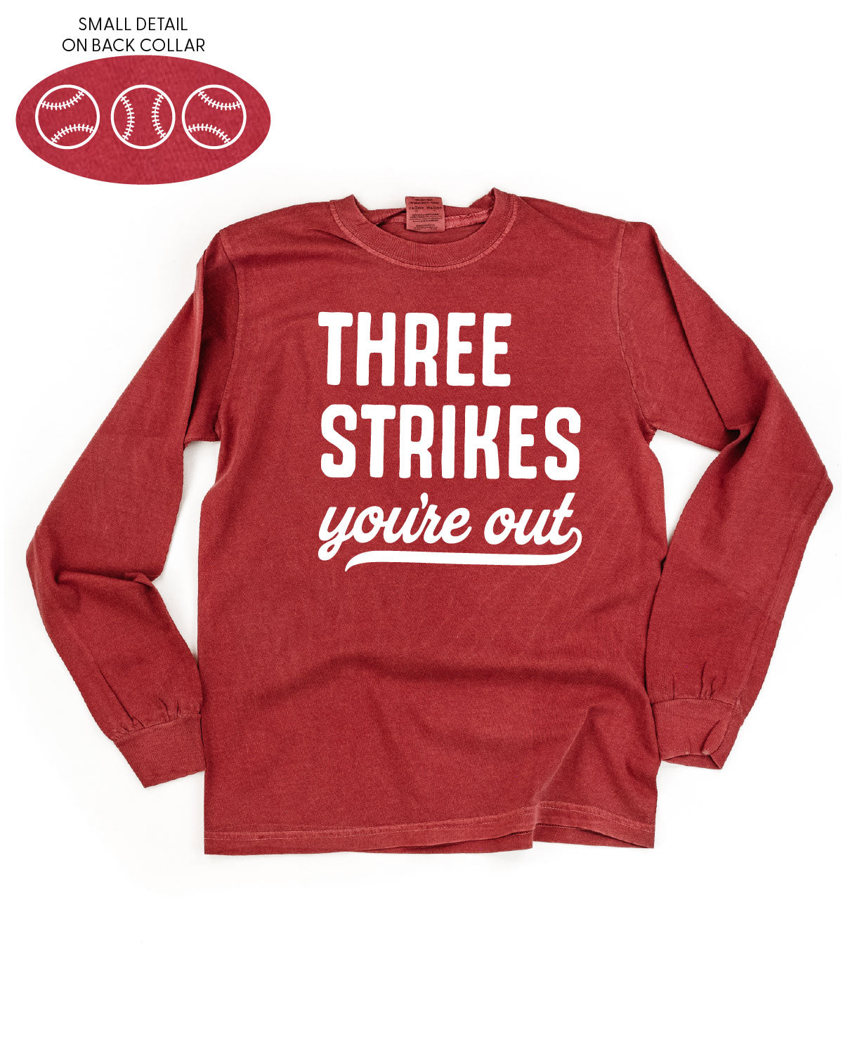 Three Strikes You're Out (bd) - LONG SLEEVE Comfort Colors Tee ‐ M / White w/ Red