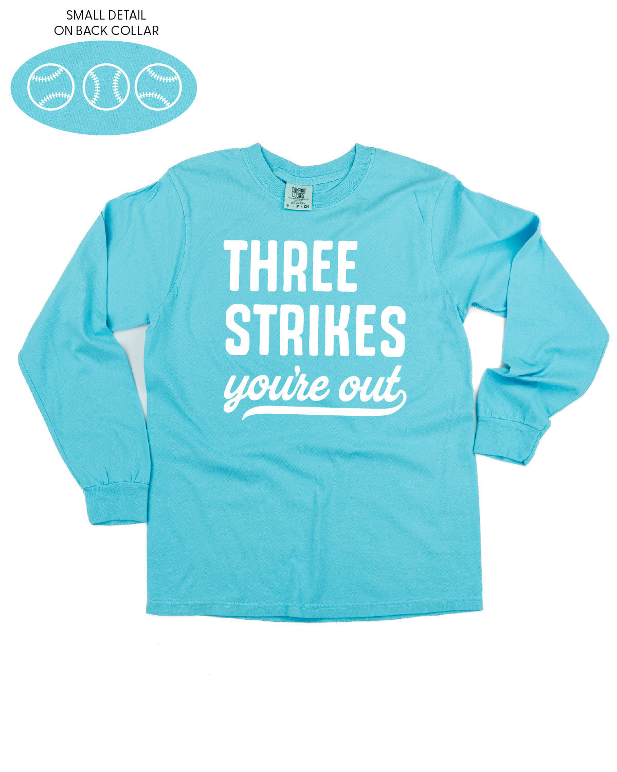 Three Strikes You're Out (bd) - LONG SLEEVE Comfort Colors Tee ‐ S / Lagoon w/ White