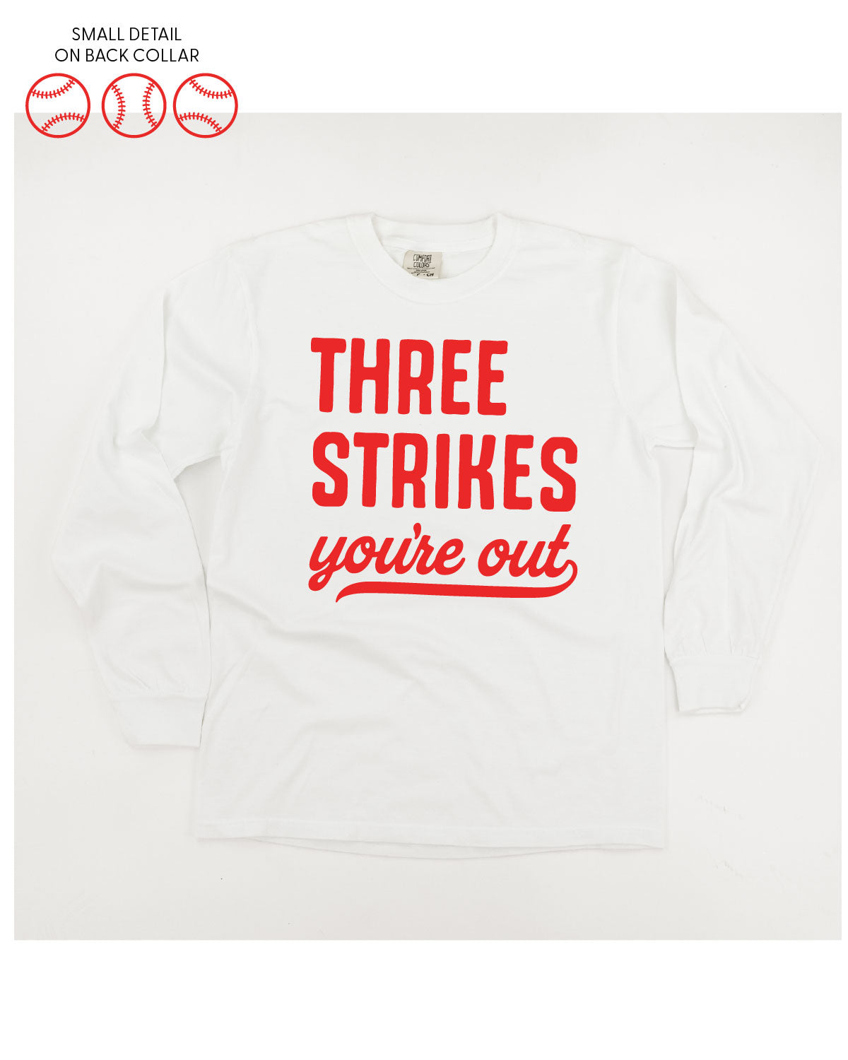 Three Strikes You're Out (bd) - LONG SLEEVE Comfort Colors Tee ‐ S / White w/ Red