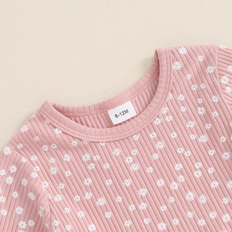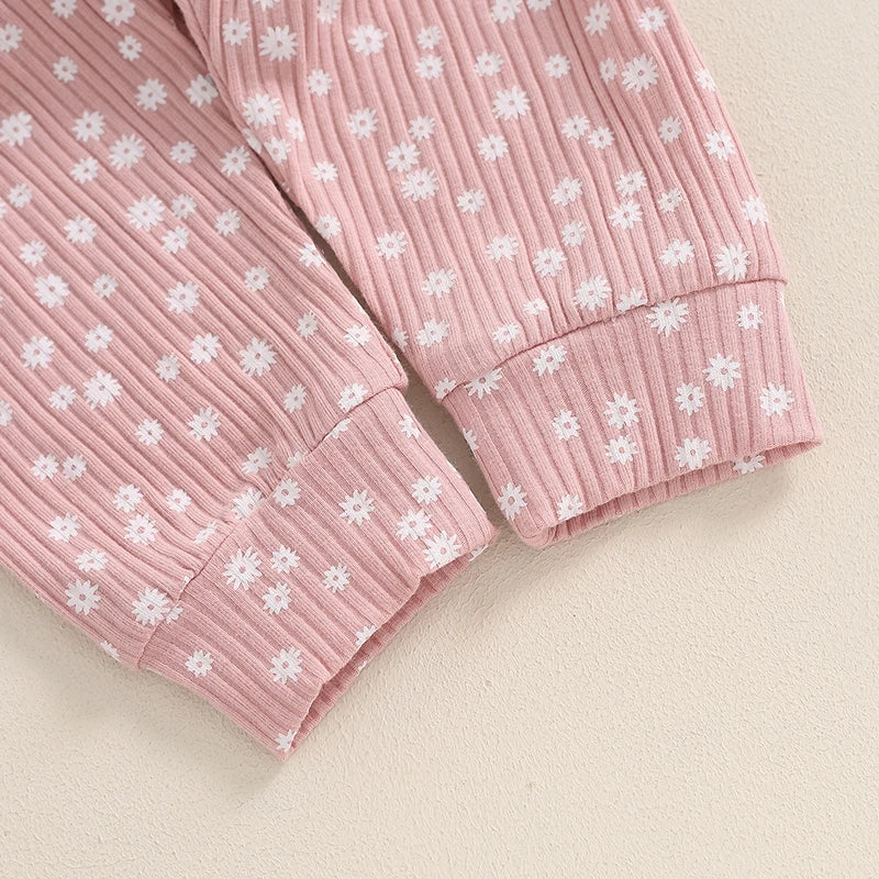 Toddler Kids Girls 2Pcs Fall Outfit Floral Flowers Print Crew Neck Long Sleeve Babygirl Top Elastic Waist Long Pants Set