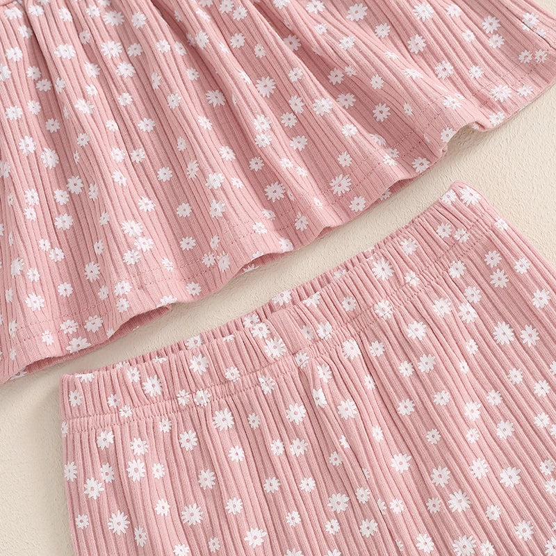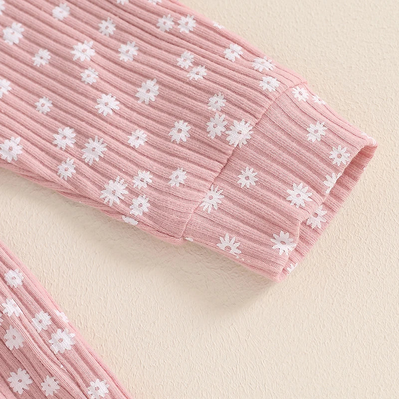 Toddler Kids Girls 2Pcs Fall Outfit Floral Flowers Print Crew Neck Long Sleeve Babygirl Top Elastic Waist Long Pants Set ‐ Pink / 18-24M / United States