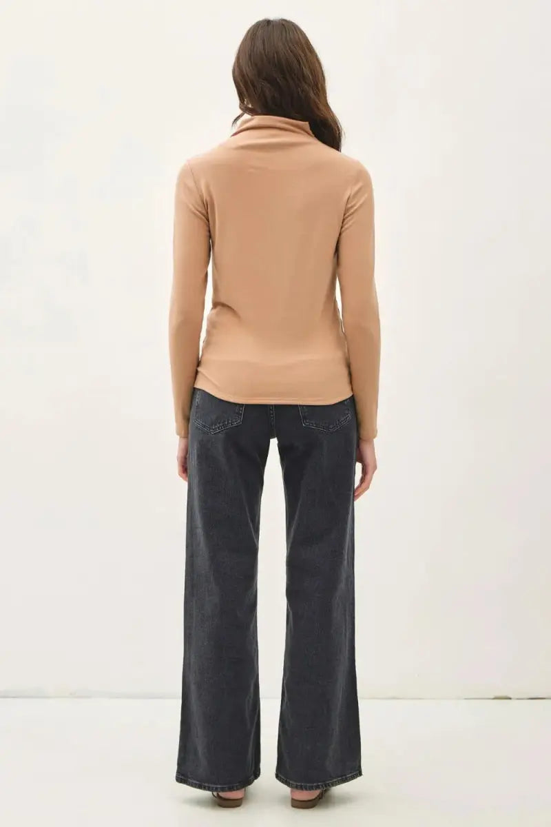 Be Cool Mock Neck Long Sleeve T-Shirt for Women ‐ Camel / S