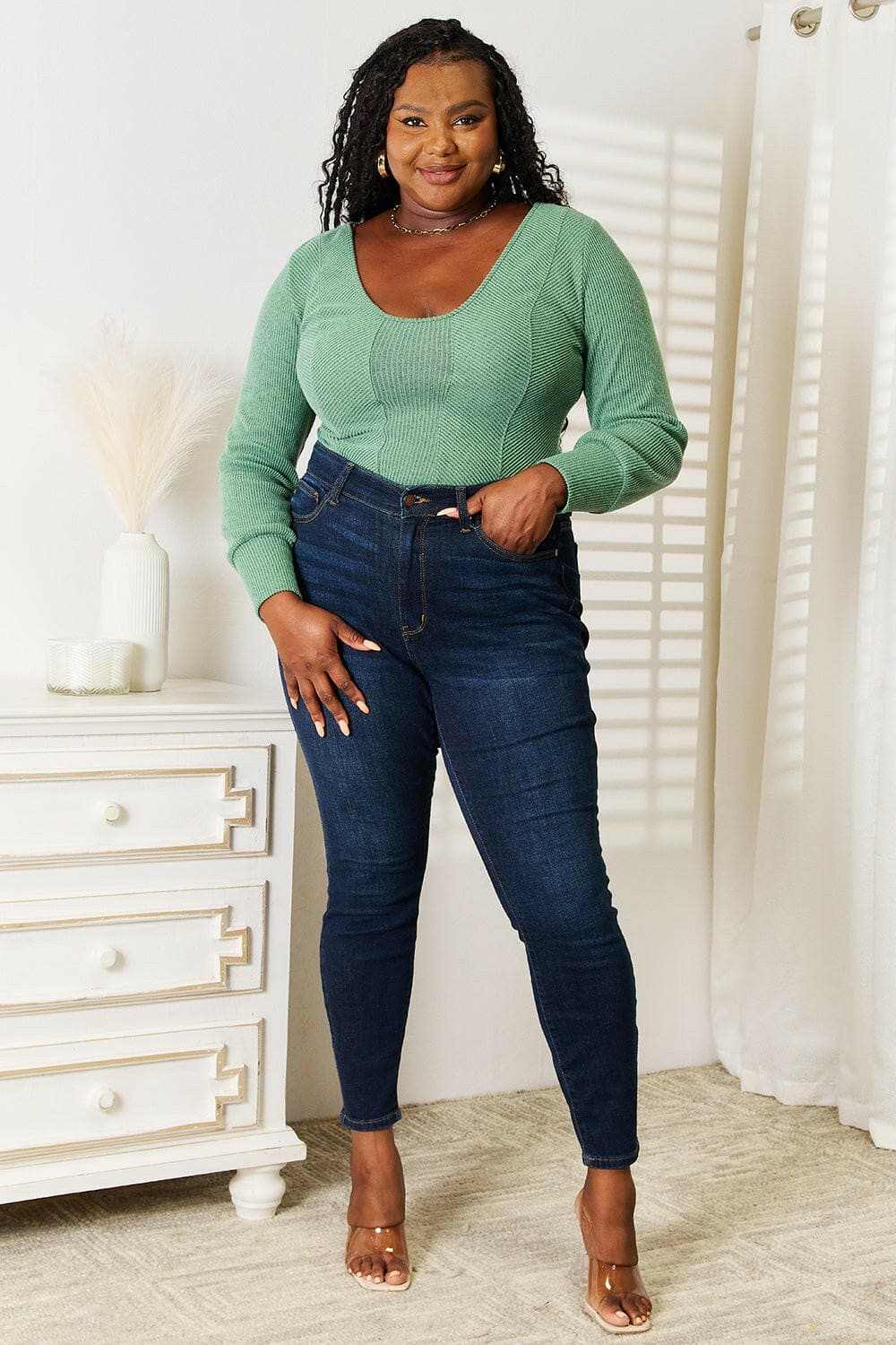 Trendsi TIKTOK - Chic scoop neck long sleeve top ‐ Mid Green / XL