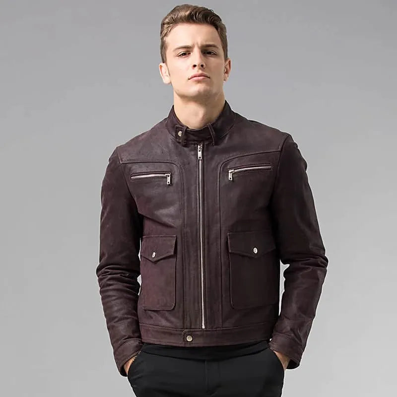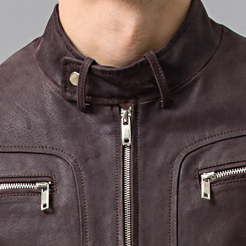 Dark Maroon Leather Jacket For Men ‐ S / Male